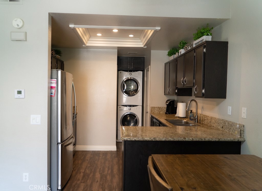 Welcome home to your beautiful Mission Courts condominium with a private, tree lined entrance, large kitchen with stainless steel appliances. This home has no one above or below; only 1 common wall. With dual master suites, each with a full bathroom. Light-filled living room and cozy fireplace. Tasteful upgrades include granite countertops, designer baseboards, luxury Vinyl Tile, custom closet organizers, ceiling fans, recessed lighting, stainless steel sink and upgraded fixtures. One master bedroom boasts vaulted ceilings, a custom closet organizer and lighted ceiling fan. The other has a nice view to the greenbelt below. Private patio is perfect for barbecuing and relaxing. HVAC has been replaced in the past 2 years.This versatile floor plan features a walk-in pantry and indoor laundry with included washer and dryer. Built-in storage loft in the garage adds convenience to the luxury of this home. You'll love being a part of such a wonderful community with a large pool, walking distance from the lake and the beach club! Located minutes away from shops, schools, and the Rancho Santa Margarita Lake. FHA AND VA approved community