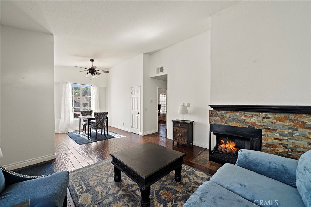 One of the best deals in RSM. COME QUICK, your opportunity is here!! Stylish 2-Bedroom Carriage Unit in Rancho Santa Margarita. Discover the bright and airy second-floor home offers the perfect blend of comfort, privacy, and style. Featuring vaulted ceilings, wood flooring in the main living areas, and a neutral color palette, it’s ready for you to make it your own. The inviting living room includes a cozy fireplace and opens to a private balcony with open views—ideal for relaxing or entertaining. There is an in-unit washer and dryer for your convenience and the kitchen comes equipped with a refrigerator and microwave. This rare carriage-style unit provides exceptional privacy with no neighbors above or below and includes a private, attached single-car garage offering easy access and extra storage. Residents of Tijeras Creek Villas enjoy resort-style amenities such as two pools and spas, a fitness center, sauna, BBQ areas, outdoor lounges, playgrounds, and beautifully landscaped greenbelts. Perfectly situated in one of Orange County’s most peaceful communities, this home is close to parks, award-winning schools, Rancho Santa Margarita Lake, the Beach Club Lagoon, Tijeras Creek Golf Course, scenic trails, the 241 freeway, and an array of dining and shopping options. Experience the best of the Orange County lifestyle in this charming, move-in-ready home.