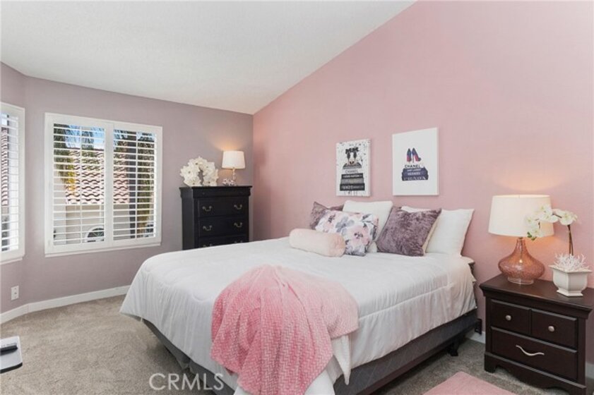 Welcome home! Enter into high ceilings and enjoy the fresh new paint and new flooring throughout the home. New Lighting fixtures draw you into the family room which is a perfect place to relax and enjoy the fireplace! To the right you will find the dining room complete with new lighting as well and it is open to the kitchen that is light and bright and comes with refrigerator and brand new microwave! Access the backyard through the dining room as well and enjoy the peaceful low maintenance backyard. Perfect space to grill and relax! Back inside brand new carpeted stairs bring you to the second story, to the left you will find the spacious primary bedroom with Full Bathroom and dual sinks in the bathroom. Storage in the hall because we can all use more storage! A Full Bathroom off the upstairs hall for the remaining 2 bedrooms has a brand new vanity and flooring. Plantation Shutters and 6 panel doors throughout the home! Rancho Lake is across the street as well as Shopping, dining, parks, schools near by and all of the wonderful amenities Rancho Santa Margarita have to offer!