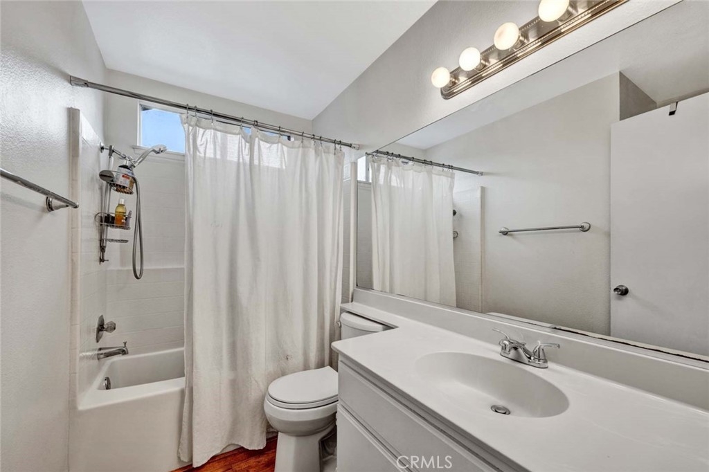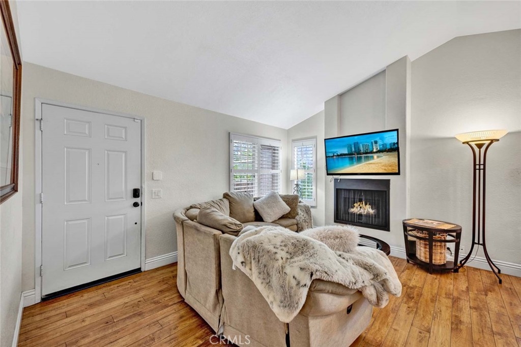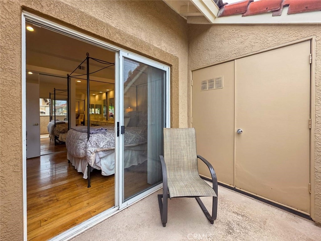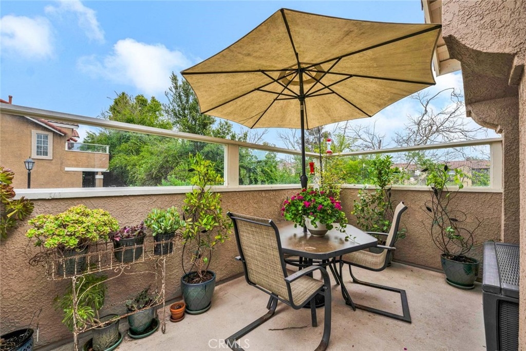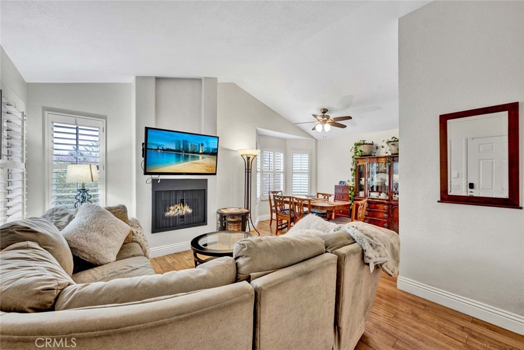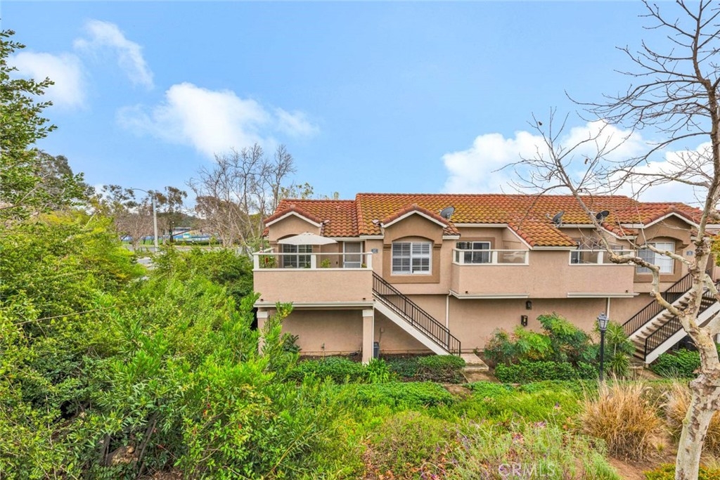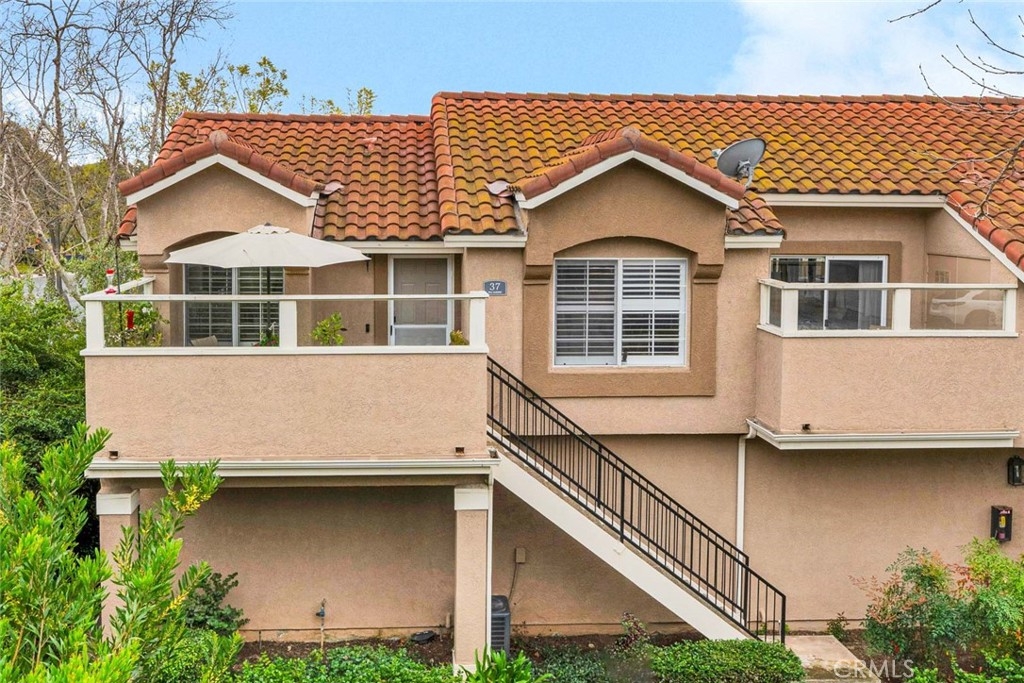 Step into comfort and charm with this upstairs Mission Court Carriage Unit (no one lives below)! As you open the door, be prepared to be awed by cathedral vaulted ceilings, creating an incredible sense of openness, light, and space with beautiful walnut toned laminate floors and newer paint throughout the home giving a warm and inviting feel. Dining room and cozy kitchen with lots of cupboard space, dishwasher and newer stove and Microwave. Step into the living room and Imagine evenings by the gas fireplace framed by elegant plantation shutters that provide both style and privacy. Roomy Master Bedroom with its own private balcony, where serene neighborhood views set the tone for tranquility, and has dual closets. Master Bath has shower tub combo and cabinets with corian counters. good sized 2nd bedroom with custom paint laminate flooring and closet. Convenience abounds with an inside stackable laundry in 2nd bath. Additionally the home has a newer AC / HVAC unit to keep you cool during summer months. New Water Heater. Extra storage on Balcony. and your 1-car space in a shared 2 car garage is directly below the condo complete with Electric car hookup, and ensuring no one resides beneath you. As an end unit, you’ll enjoy extra privacy and the convenience of the walkway right at the base of your staircase to access garage. Residents can take advantage of the delightful community pool, and nearby hiking/biking trails, for an outdoor friendly lifestyle. City amenities, city events, beautiful parks, swimming pools, beach club with a stunning lagoon with BBQ and picnic area. Lake walk, playgrounds, sports fields, tennis, pickleball, basketball, and volleyball. Other amenities include Dog Park, Skate Park, and hiking and biking trails. Low Taxes, No Mello Roos.