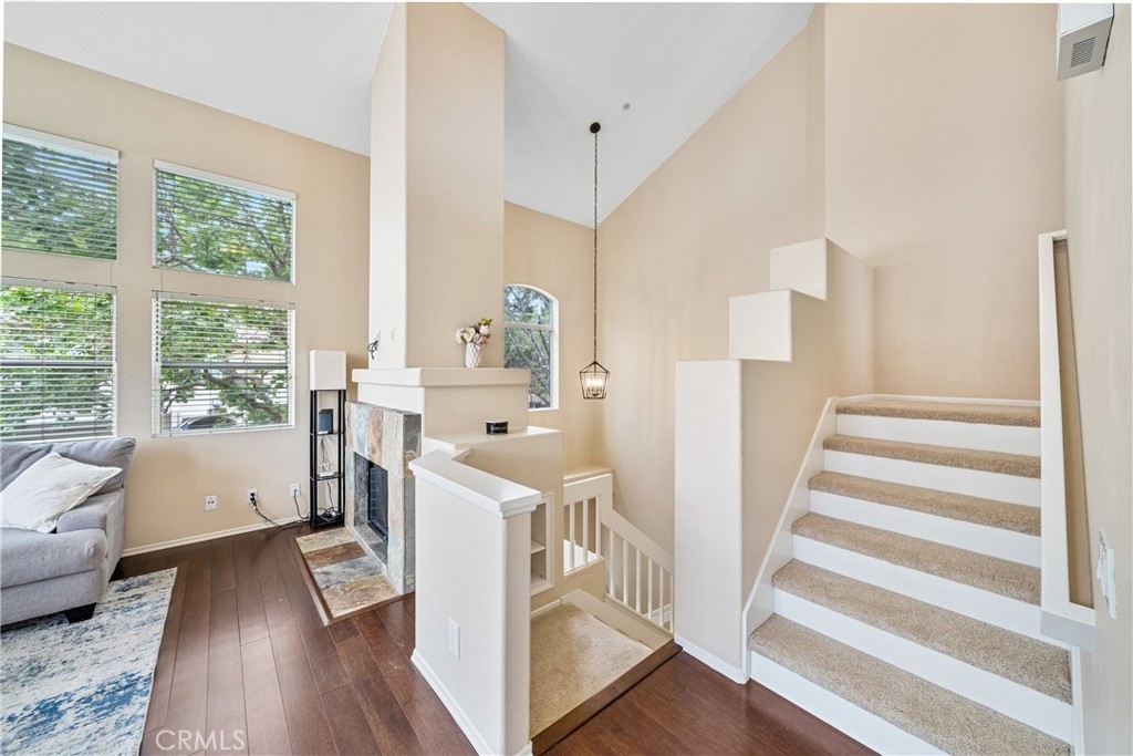 Welcome to 4 Paseo Del Sol, a stunning home nestled in the highly desirable Cabo Vista community of Rancho Santa Margarita. This thoughtfully designed residence offers the privacy of no neighbors above or below, along with the convenience of a direct-access 1-car garage. Step inside to find soaring ceilings, bamboo hardwood, and an abundance of natural light that enhances the home's open and airy feel along with a cozy fireplace. The main level primary bedroom boasts a spacious walk-in closet and dual sinks for added comfort and functionality. Upstairs, a second room with its own full bathroom is currently configured as a loft—perfect as a guest space or office or can be closed off for a private bedroom. A dedicated laundry area adds to the home's practical layout. Ideally located just moments from the serene Lago Santa Margarita, the vibrant RSM Town Center's shops and restaurants, and with easy access to the toll road for smooth commuting, this home offers the perfect blend of convenience, comfort, and community. Don't miss this rare opportunity to own in one of Rancho Santa Margarita’s most sought-after neighborhoods!