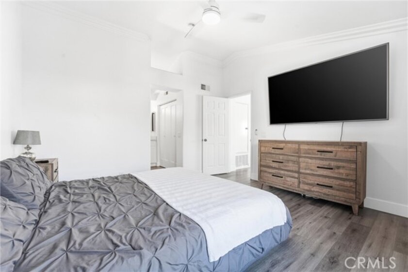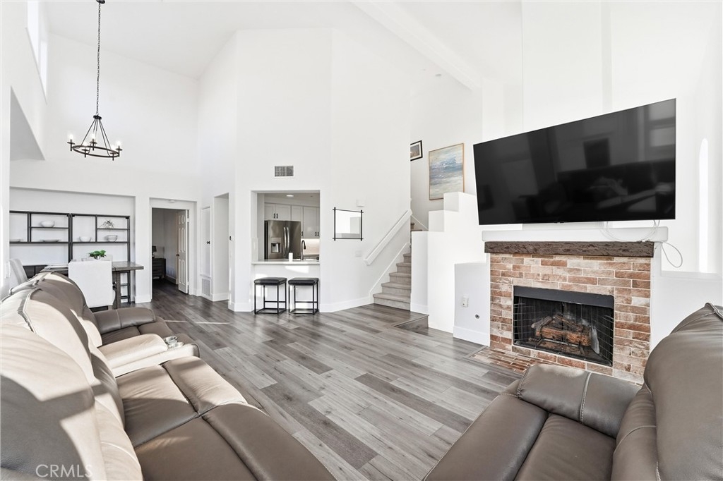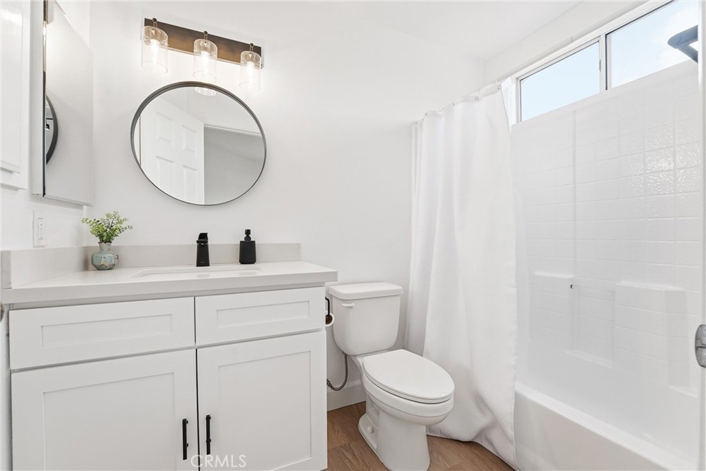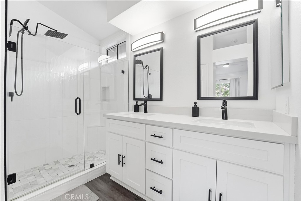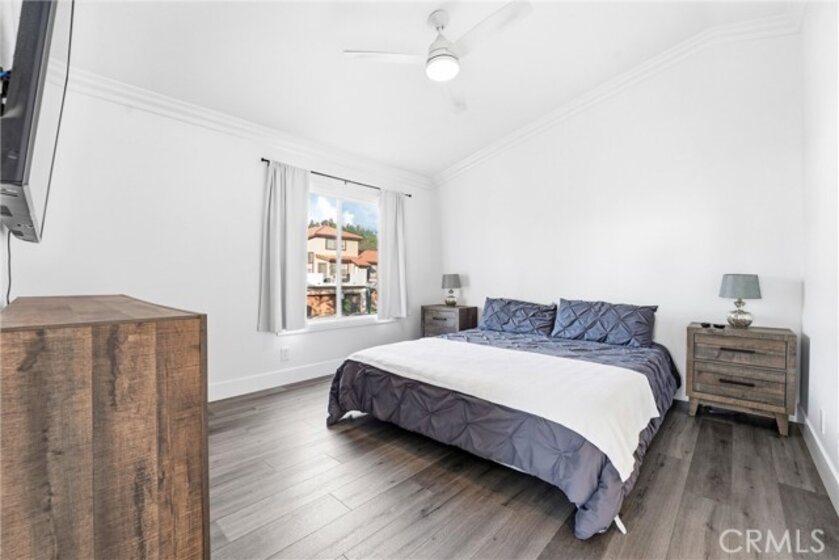 Welcome to 4 Paseo Estrellas, this stunning home is full of natural light it's a end unit, with no one below or above. Privacy and views make this a desirable location in the Cabo Vista community of Rancho Santa Margarita. One car garage attached, Two bedroom with two en-suite bathrooms. One primary bedroom on the main level has walk in closet, a fan, and newly remodeled white and grey shower and bathroom with quartz counter with two sinks. The upstairs is perfect for bedroom or office and has a private bath. Beautiful window shades throughout let in light with privacy. New,paint, lighting, luxury vinyl wood floor. Dedicated full size laundry and walk in pantry highlight this floorplan. The new quartz kitchen counters and white cabinets w soft close throughout. All new appliances, six burner stainless range and stove, microwave and Stainless refrigerator with French door and new stainless dishwasher, New havac system and the roof was replaced last year and has new rain gutters. Located near and full access to the Lago Santa Margarita beach club, biking and hiking trails, pickle ball and tennis courts. Love the lake life with the RSM Town Center and shops and restaurants. Easy access to the Toll Road for commuting, enjoy this rare opportunity to own in Rancho Santa Margarita.