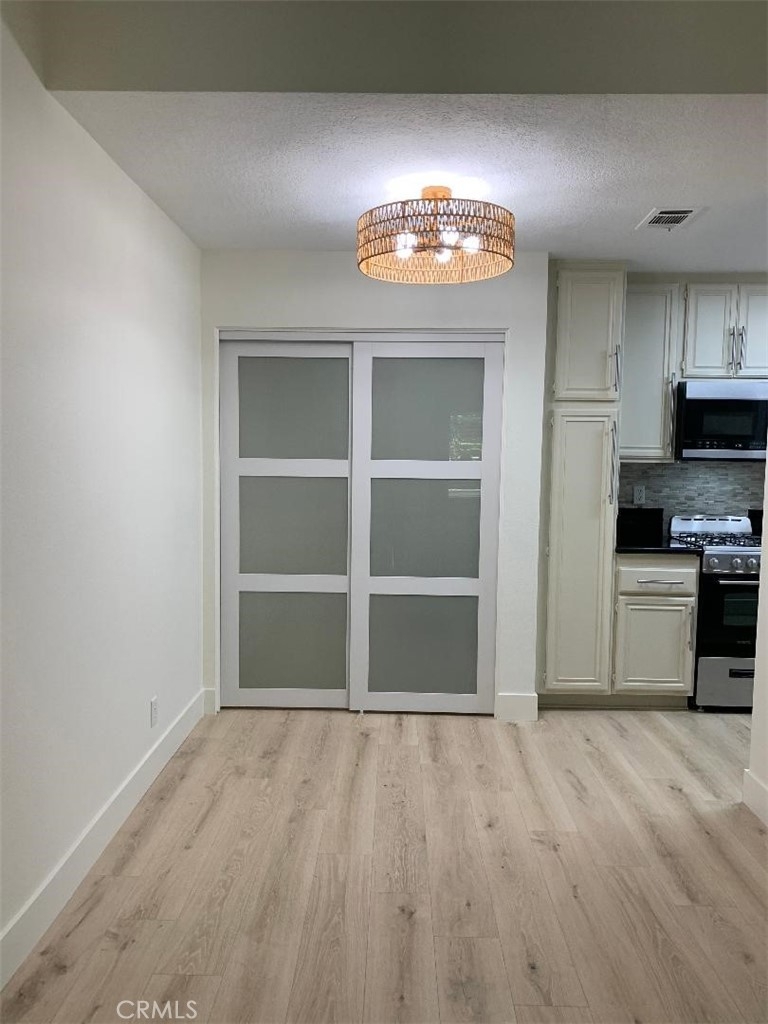 Completely updated home. New floor and paint throughout. New stove, oven and microwave. Like new stackable washer and dryer. New wooden shades. Conveniently located end unit with view of trees and near covered parking. It is quiet and surrounded by large trees and grass. Shopping center and restaurants very close. Community pool, spa, and playground are a short distance.