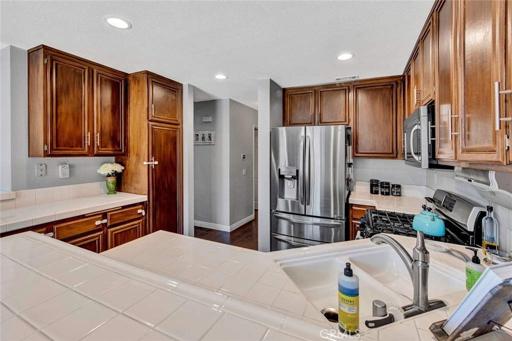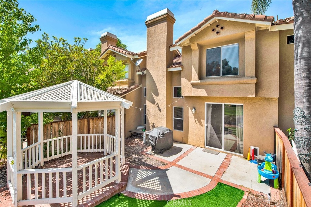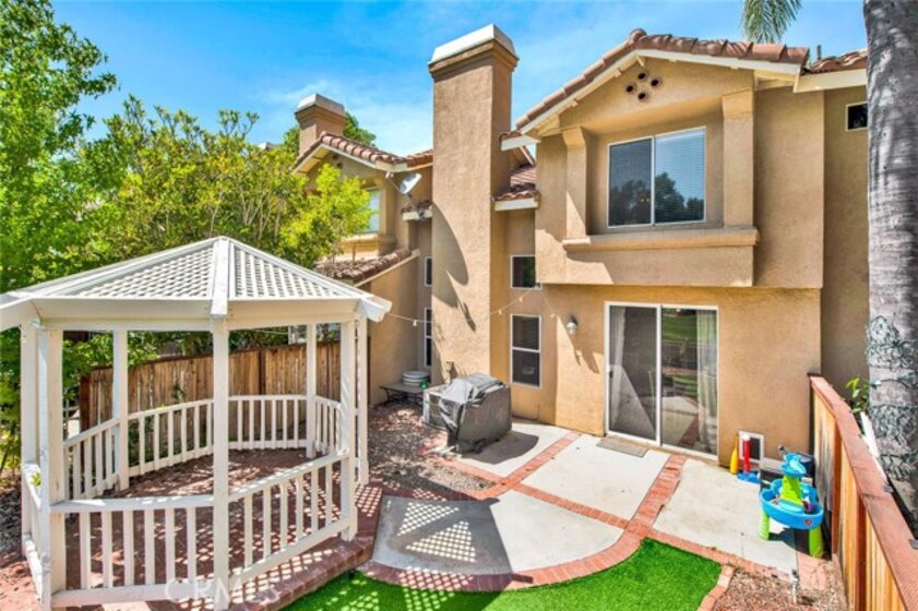 VIEWS, VIEWS, VIEWS FROM THIS GOLF COURSE CHARMER. Walk through private walkway and enter into the hallway and then into Living room with Vaulted Ceilings, Custom Greige Paint, Dark oak laminate flooring, and lovely fireplace. Open Kitchen, looks out to views and has refaced walnut toned Cabinets, tiled counter tops, and stainless steel appliances. Dining area, kitchen and living room have views of 4th fairway of the Tijeras Creek Golf Course through the Large windows and large sliding glass door. Whimsical Back Yard with your Own Gazebo, and engineered grass you will never have to water! Back yard is great for entertaining and big enough for a dog. Separate Laundry comes with Washer/ Dryer. 1/2 bath down. Dual Masters upstairs, Larger Master with Grey Laminate Flooring has Golf Course Views. Master Bath with upgraded white Cabinet, Dual Sinks with Quartz Counter, Dual closets, Tub Shower combo. 2nd master has window seat and also has its own bathroom with grey cabinets Tub / Shower. 2 Car garage. Low tax rate of 1.02% and HOA dues are 300 +74. Community re-piping for all homes in Sierra Verde was completed in 2016. Community amenities, Pool Spa, Hiking and Biking Trails, shopping, restaurants, Beach Club, Sports Parks, Tennis Courts, Pickle Ball, Basketball, Beach Club, Lake Walk, Dog Park, Skate Park, Distinguished School Arroyo Vista K-8. Tesoro High School, Capo School District.