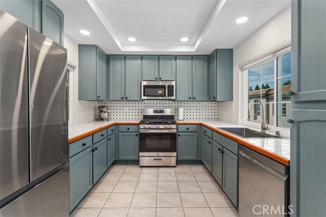 Welcome to this beautifully updated upper-level condo in the desirable Tijeras Creek Villas community of Rancho Santa Margarita! Offering over 900 sq. ft. of stylish living space, this 2-bedroom, 2-bath home combines comfort, convenience, and modern upgrades throughout. Step inside to find a light and bright open floor plan with vaulted ceilings and large new windows that fill the space with natural light. The family room features a cozy fireplace and an open floorplan, creating the perfect backdrop for relaxing or entertaining. The kitchen boasts new recessed lighting, updated outlets, and all appliances included, seamlessly opening to the dining area with a new, modern light fixture. The primary suite offers access to a private balcony through a brand-new dual-pane slider door, perfect for morning coffee or evening breezes. Additional highlights include laminate wood flooring, new blinds (except in the primary bedroom), and fresh upgrades throughout, including smoke and carbon monoxide units. Enjoy the convenience of a one-car garage below the unit, plus community amenities like two sparkling pools/spas and a fitness center, all just steps away. Additionally, as members of SAMLARC, you'll enjoy amenities like pickleball courts, tennis courts, pools throughout RSM, the lake, clubhouses, the beach club, and much more! This turnkey home blends stylish living with a fantastic location near parks, shopping, dining, and top-rated schools — all within the heart of Rancho Santa Margarita.
