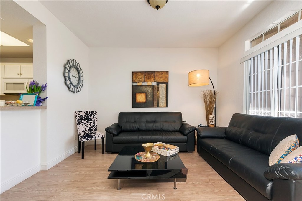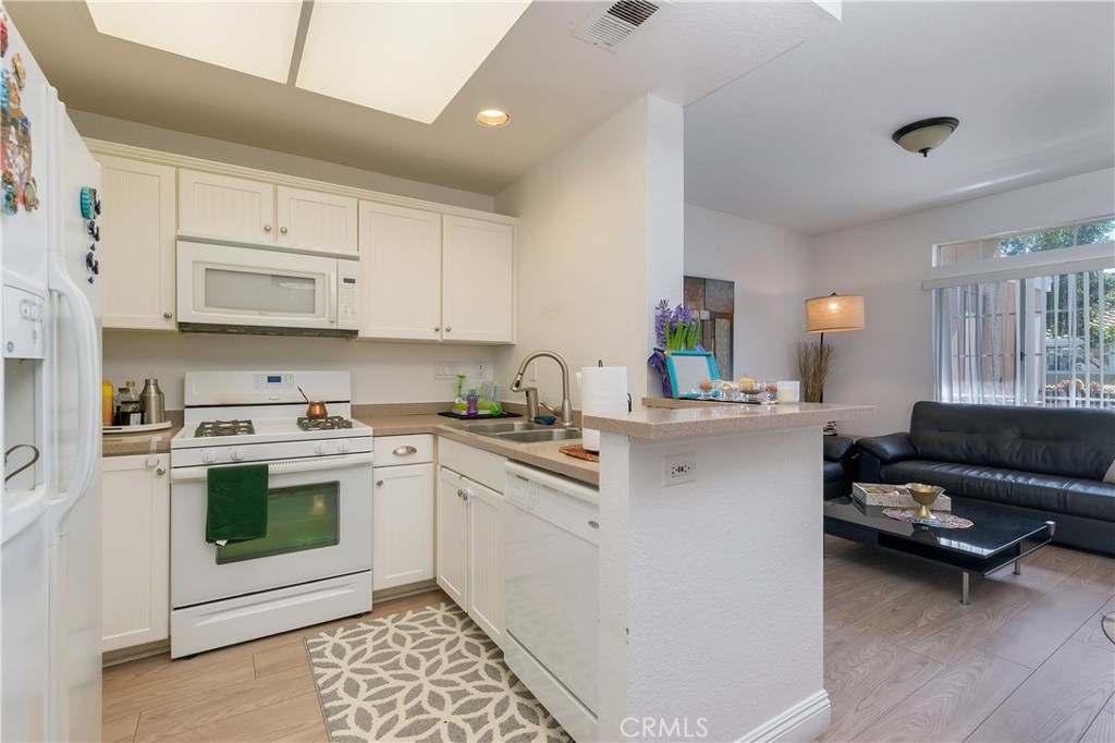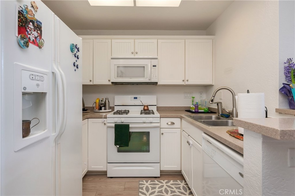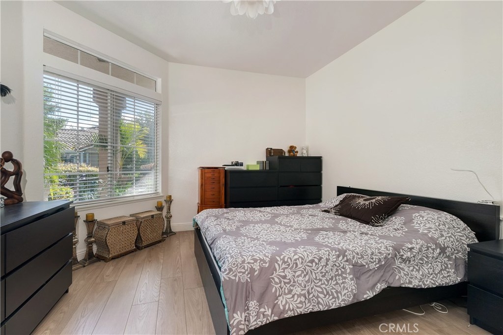 Beautiful, elegant and picturesque 1 bedroom and 1 bath home situated in the Belflora community. Lower level unit with private patio area. Flooring has been updated with sophisticated wood style laminate throughout within the past couple years. A fresh coat of paint was laid down at the same time. As soon as you enter, you immerse into the great room style living area which is attached to the dining area. Near by is the kitchen with modern countertops and gorgeous white cabinetry. Off to the other end, the bedroom with a view to outside of the unit. The ensuite features his and her sinks and a bathtub to soak in after a long day. The Belflora community is nice and quiet, features a pool area with plenty of space to lay out during the warmer months. Nice and close is a playground to take the little ones to. Reap the benefits of SAMLARC, which include tennis courts, parks, playgrounds, pools and most notably the Beach Club Lagoon just a few blocks away. Nice and close to major shopping areas and restaurants of RSM and apart of the Saddleback Unified School district. Welcome to your new home!