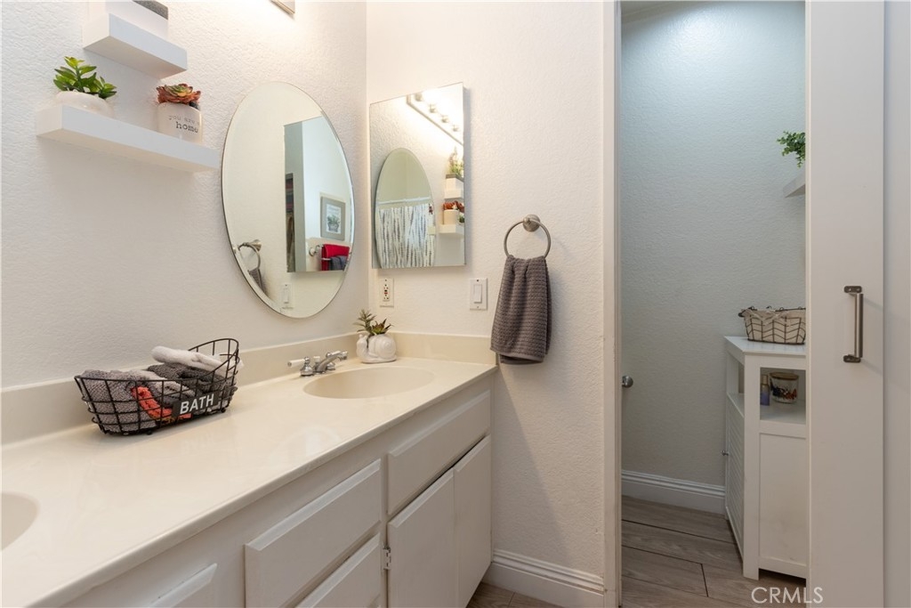 This turnkey, lower level, one bedroom, one bath condo located in the highly desirable Belfora community in the heart of Rancho Santa Margarita is the one you have been waiting for! Enclosed front patio area with gate, wood laminate flooring throughout, a cozy fireplace in the living room, upgraded kitchen with recessed lighting, white cabinetry, breakfast counter and a separate dining area. Master bath includes dual sinks, a large vanity, a shower/bath combo, and a barn door for additional privacy. The master bedroom is spacious and shows light and bright. There is also a bonus area which is currently being used as a crafter's work space but could easily be used as a nursery, reading nook, relaxation space, or home office area. Enjoy all that Belfora and the city of Rancho Santa Margarita have to offer. Association Amenities Include: Pools, Spas, Parks, Sport Courts, Tennis Courts, BBQs, Tot Lots, RSM Beach Club and Lagoon, Community Events, and so much more!