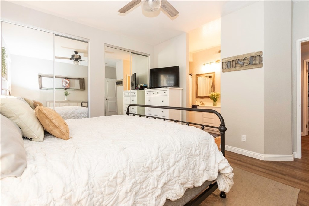 This is the one you have been waiting for! Located in the Casafina Tract this downstairs 2 bedroom, 2 bathroom, end unit has it all! From the moment you enter you will feel right at home. Features include: dual pane windows, upgraded wood laminate flooring throughout, a large spacious kitchen with Corian counters and soft close cabinets and drawers, new ceiling fans in both bedrooms, new light fixtures and decor in both bathrooms, mirrored wardrobes, a new water heater, magnetic door stops and so much more! Enjoy your cozy fireplace in the living room, entertain in your gourmet kitchen or relax on your private patio. This property is totally turnkey and has been freshly painted in designer colors with a neutral color palette. There is a separate laundry area and the attached garage has plenty of storage and shelving. Located near award winning schools, dining, shopping, parks, walking/hiking trails and the RSM Beach Club and lake - you are sure to enjoy all of the amenities that Rancho Santa Margarita has to offer! Welcome to your new HOME!