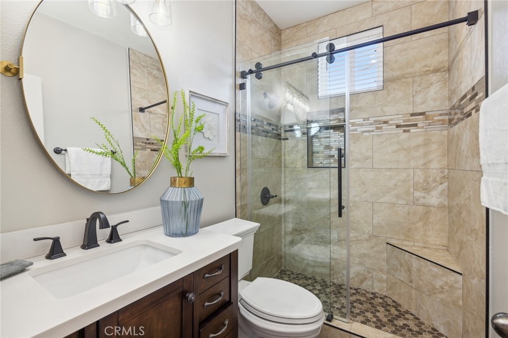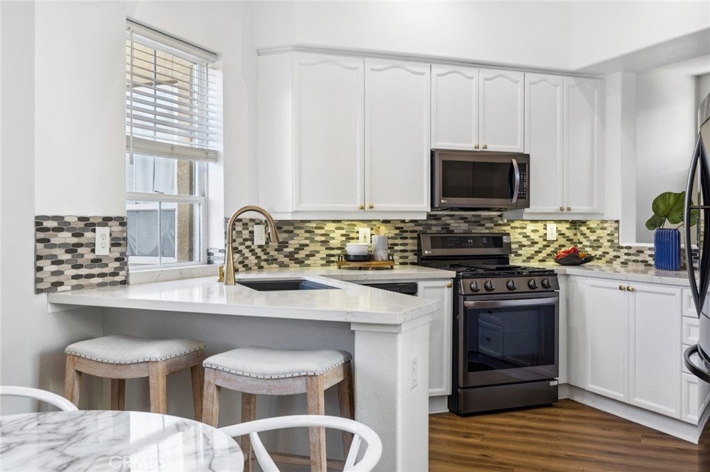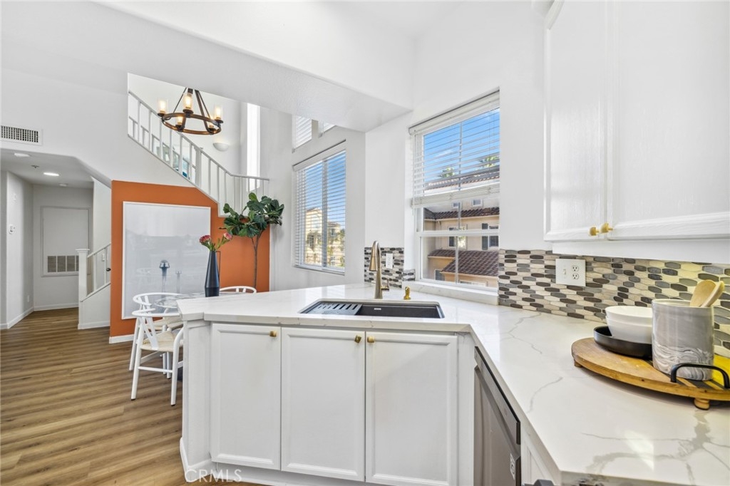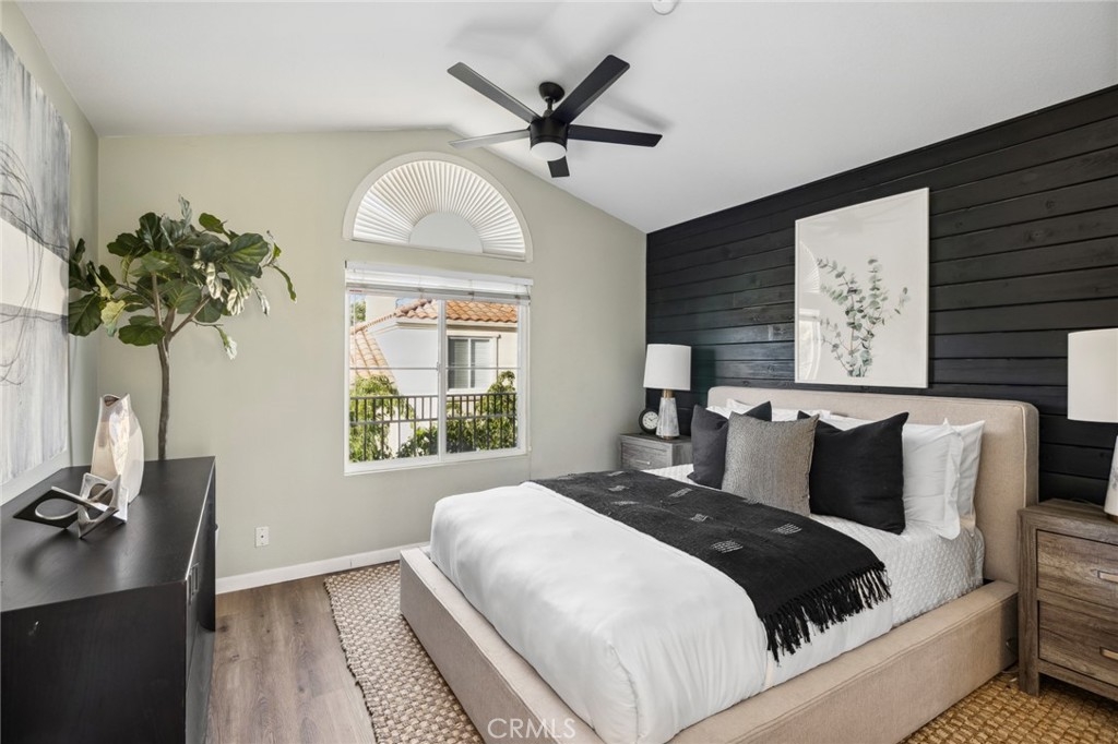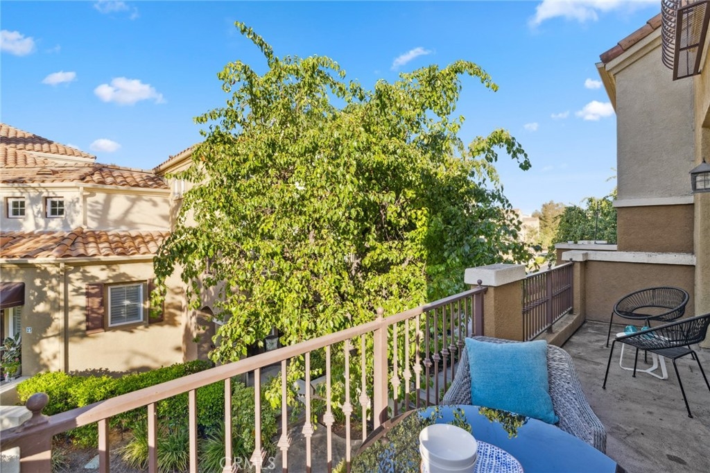 Located in the heart of Rancho Santa Margarita, Corte Melina community is OC's living @ its best! Stunning 2 bedroom, 2 bath home, w/direct garage access & close to plenty of shopping, dining & entertainment. Oversized, single car garage w/newly added storage, provides direct access into your new home; leading you directly into the convenient laundry room loaded w/ample cabinets & storage space. Glide up the stairs into the main living area and appreciate how open, light & bright the surroundings are! Timeless Plantation Shutters & private balcony is great for BBQ's & morning coffee. The kitchen & dining room offer plenty of space where natural light pours in from every window, highlighting the vaulted ceilings. The kitchen includes stainless steel appliances, quartz counter tops & plenty of room to prepare gourmet meals. The large guest bedroom & full guest bathroom are just down the hall offering fantastic privacy for an office or guests. The generously sized primary bedroom is located on the next level; complimented by a remodeled bathroom w/ updated vanity, newer fixtures, newer mirrors, newer lighting & custom shower which offers maximum privacy & style. Additional upgrades include designer, vinyl plank flooring, updated baseboards, updated ceiling fans, Ring door camera, custom shiplap wall, newer kitchen appliances & fresh paint throughout. Corte Melina community offers its residents a sparkling pool, spa & fitness center. Rancho Santa Margarita community amenities include 13 community parks, 4 pools, The Beach Club Lagoon, the Lago Santa Margarita, 9 trails, sports fields, courts and picnic covers. With excellent schools & easy access to all of Orange County's freeways & toll roads, it's impossible to find a better value in a more welcoming neighborhood.