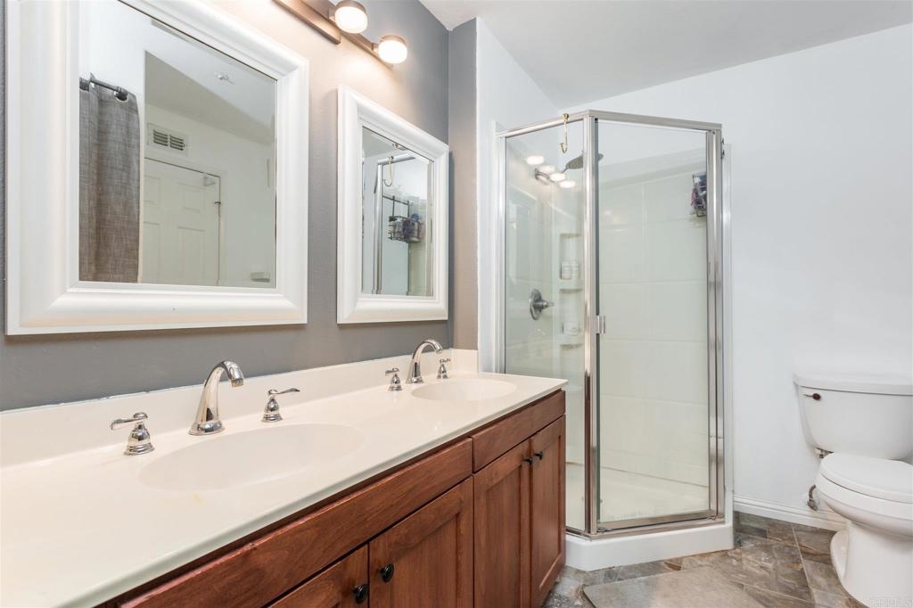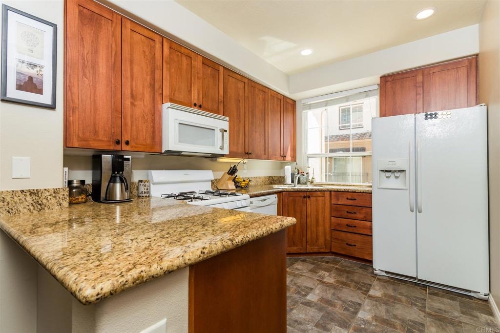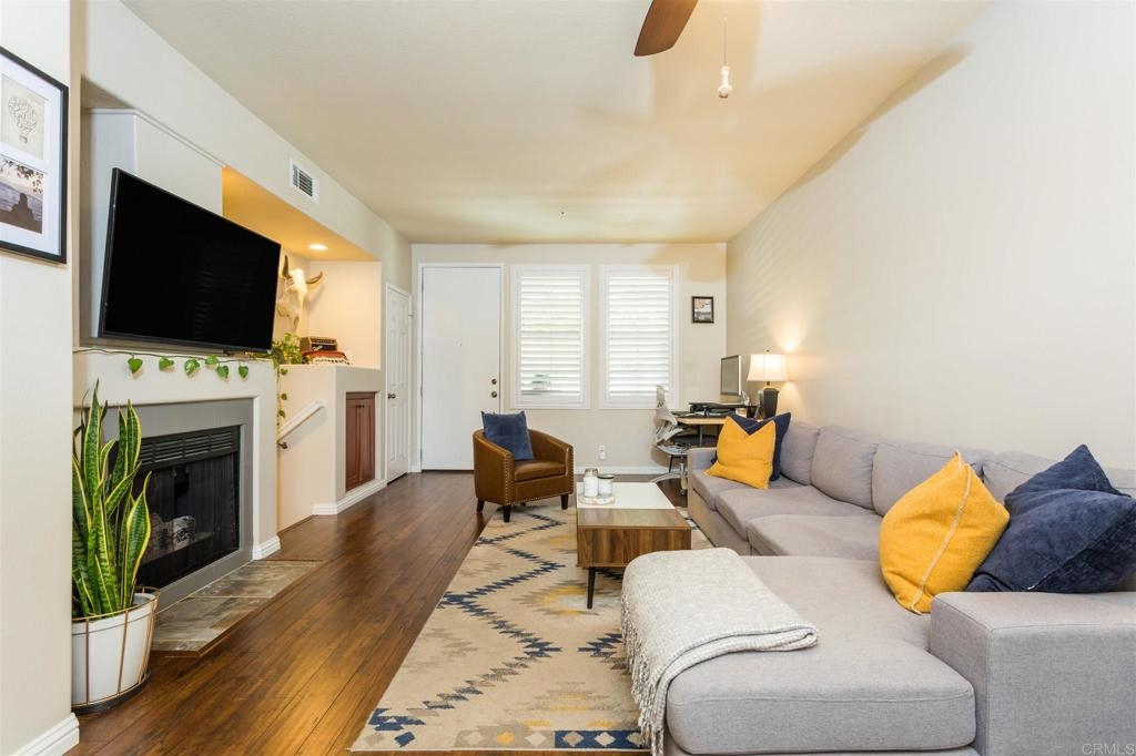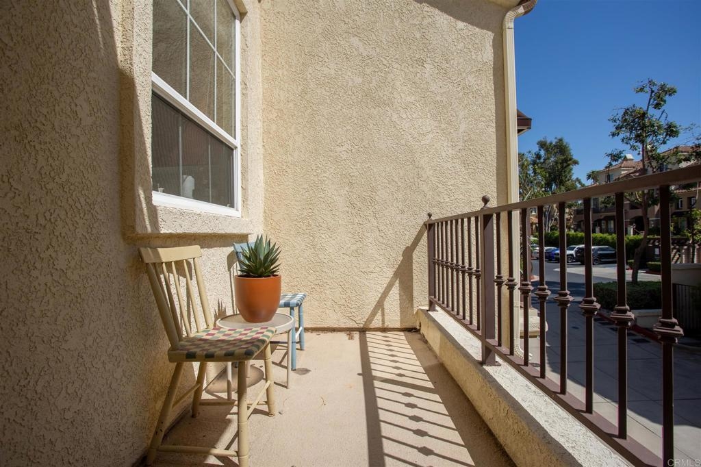 Don't miss this beautiful home in the gorgeous area of Rancho Santa Margarita! Masterfully designed to give you the ultimate living experience. Step into the charming kitchen that overlooks the living room, you'll discover quality laminate flooring, a newer built-in above fireplace, and built-in shelving unit for your TV and entertainment equipment. To bring natural light into the space, this room has premium louver plantation shutters with invisible tilt. These same shutters are in the bedroom as well. The spacious bedroom has a ceiling fan and a balcony for relaxation on warm summer days. The elegant bathroom has been upgraded with tile flooring, a stunning dual vanity, light fixture, and more. Stroll down the laminate stairway to find a laundry room. The garage has LED workshop lighting, epoxy floors, and a newer garage door opener with a deadbolt auto-locking mechanism for extra security. Additional features throughout the home include updated baseboards, newer window screens on all windows, a Nest thermostat, and Ring doorbell, and more.