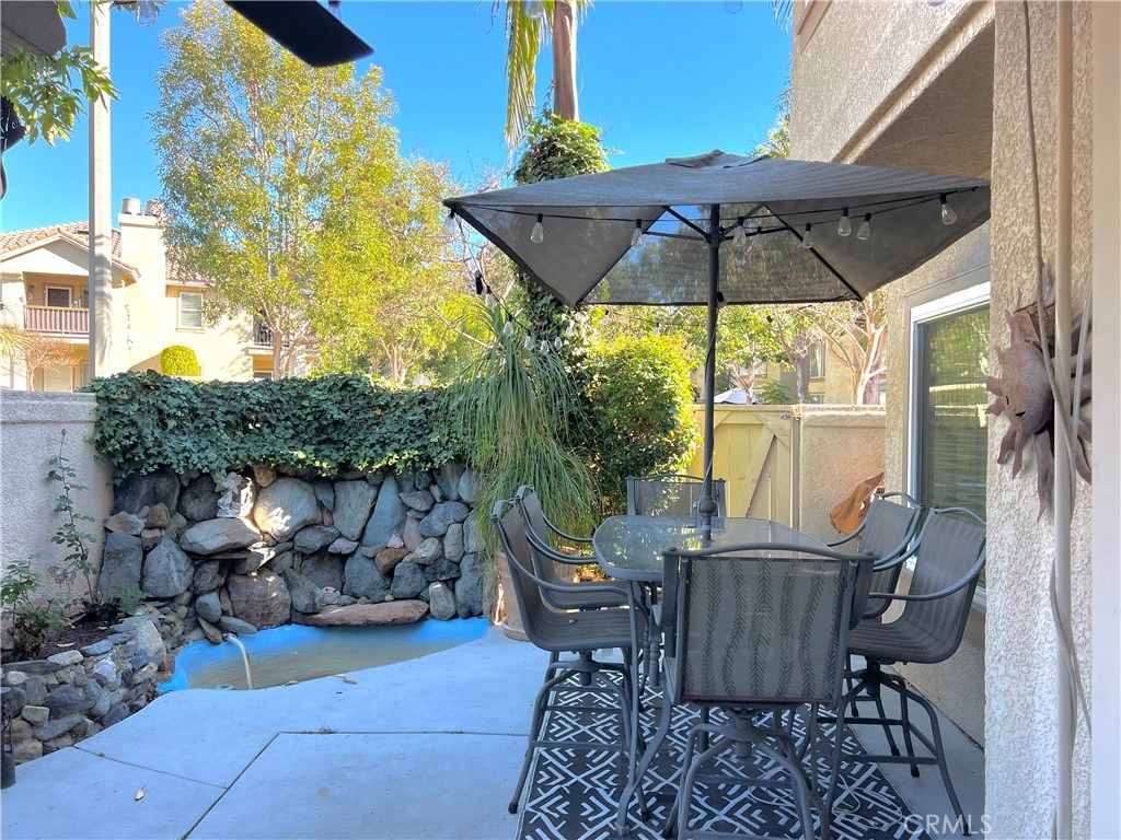 Welcome to 53 Encantado Canyon Road, Rancho Santa Margarita! Located in the highly desirable Belterraza community, this beautifully remodeled end-unit offers a rare combination of modern updates, privacy, and outdoor living. With 1,764 square feet of living space, 3 spacious bedrooms, and 2.5 bathrooms, this home provides an ideal layout for both comfortable living and entertaining. As you step inside, you are welcomed by an expansive Formal Living and Dining Room that creates a grand first impression with its vaulted ceilings. The open-concept floor plan flows seamlessly into the heart of the home with a stunning remodeled kitchen. Featuring sleek quartzite countertops, stainless steel appliances, custom cabinetry, and a spacious breakfast bar, the kitchen is as functional as it is beautiful. It adjoins the cozy family room, where a gas-burning fireplace adds warmth and ambiance. Upstairs, you’ll find three generously sized bedrooms, including a primary suite with a large walk-in closet and an en-suite bathroom featuring dual vanities, a soaking tub, and a separate shower. The additional two bedrooms share a full bathroom, ensuring that the entire floor plan is both functional and ideal for families or guests. The expansive backyard is truly an entertainer’s dream, offering a covered patio, beautiful landscaping, and a tranquil fountain. This private, peaceful space is perfect for both relaxing and hosting gatherings. As an end unit, this home benefits from added privacy, with no units above or below, allowing for serene outdoor living. This home has been thoughtfully updated with modern conveniences, including newer windows for improved energy efficiency and noise reduction, re-piping throughout the entire house for peace of mind, and a newer water heater for reliable hot water. For added convenience, there is a two-car attached garage with additional storage space and direct access to the home, as well as central A/C and heating for year-round comfort. 53 Encantado Canyon Road combines modern updates, privacy, and an exceptional location with access to some of the best amenities in Rancho Santa Margarita. Don’t miss the opportunity to make this stunning home your own—schedule your tour today!