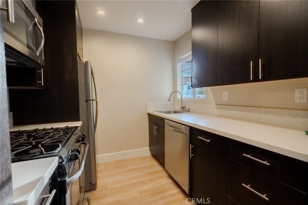 Rare corner-unit two bedroom one bathroom condo offering extra privacy, natural light, and a bright open layout. Updated kitchen and bathroom finishes, fresh interior touches, and move-in ready condition. Smart floorplan with comfortable bedroom sizes and efficient use of space. In-unit laundry, assigned parking, and low HOA. Excellent walkability with lake access, Beach Club facilities, parks, trails, shopping and dining nearby. A turnkey home offering convenience, comfort, and strong value in a highly desirable lakeside neighborhood.