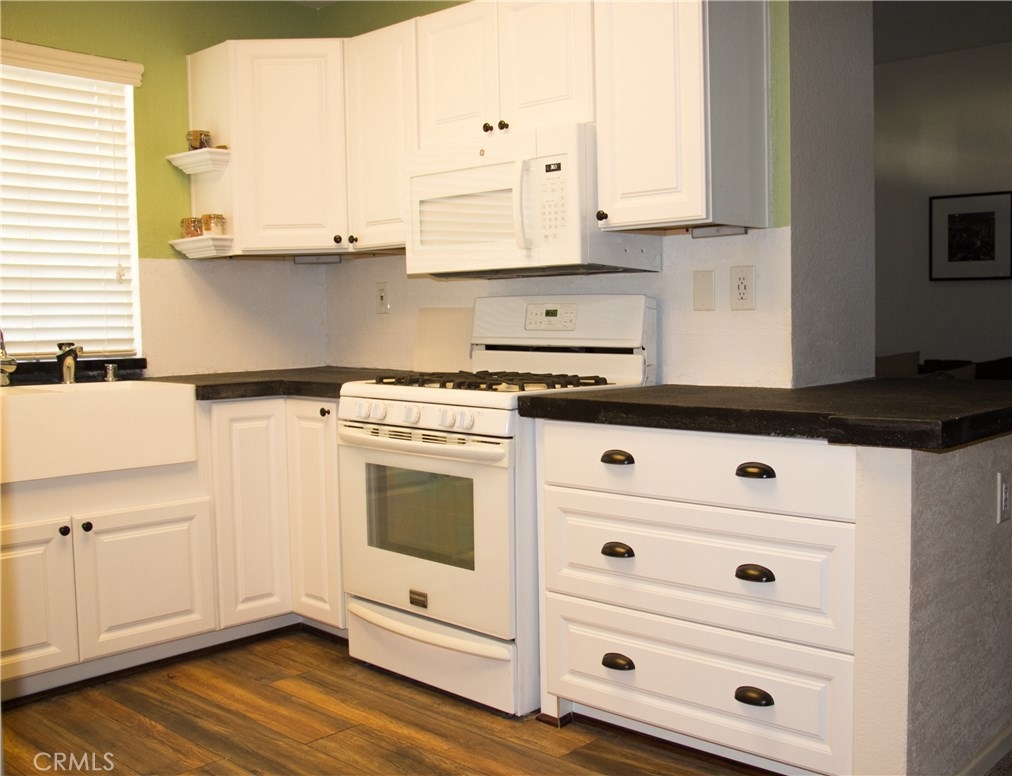 Sought after Belflora ground-floor corner unit condo with attached single car garage featuring direct access. It boasts a newly remodeled kitchen with brand new cabinets and hardware,brand new concrete counter tops, newly installed double-basin farm style sink, and new flooring that brings the design together.Even has a custom corner lazy-susan cabinet located next to the stove for easy access and a pass-through window to the patio great for use when hosting a party.Appliances included: new refrigerator, new above stove microwave, dishwasher, stove, washer and dryer all included in sale with no warranties.Elegant living room with brand new deep pile carpet features romantic fireplace, sliding glass door opens to an enclosed patio great for entertaining or a relaxing retreat. Separate dining room features ceiling fan, new carpet, and space for a table to seat 6. Beautiful master suite featuring dual sink vanity, soaking tub, brand new toilet, large dressing area and spacious walk-in closet.An equally large second bedroom with additional full bath, brand new toilet and dual sink vanity located right outside the bedroom, making it available for guests.Separate enclosed laundry space in hallway.Resort style living at its finest with beautiful association pool & spa, lush greenbelt walks and more. Conveniently close to RSM lake and all the amenities. Close to huge shopping center, food and entertainment.Right in the heart of RSM with easy access to the 241 entrance/exit toll road.