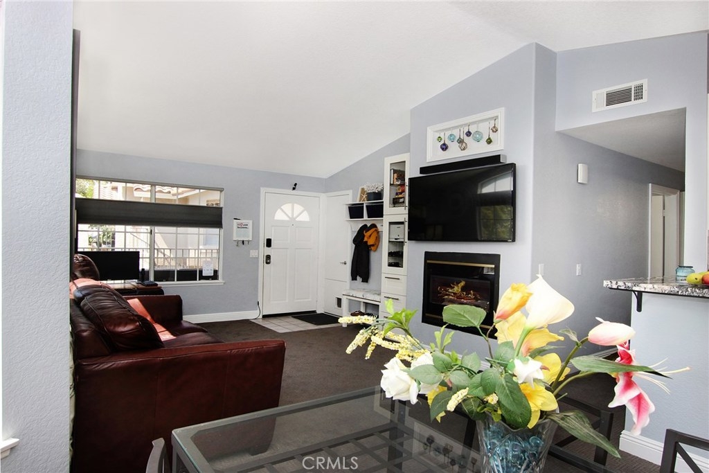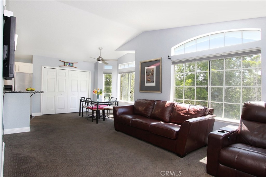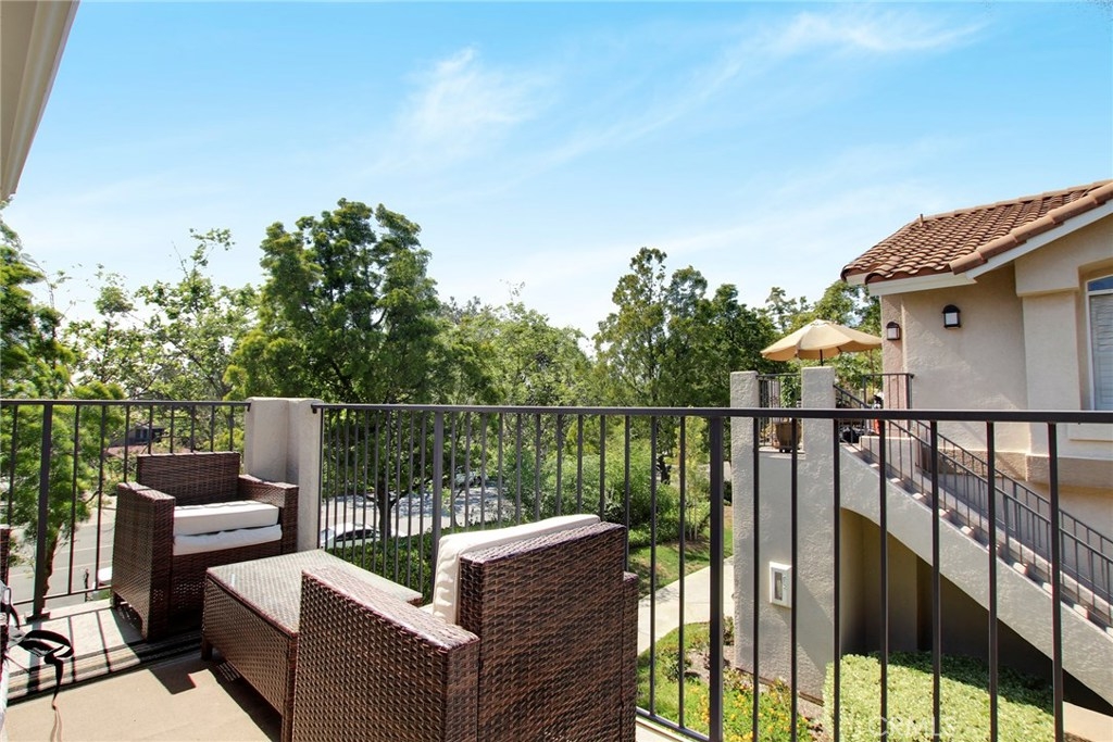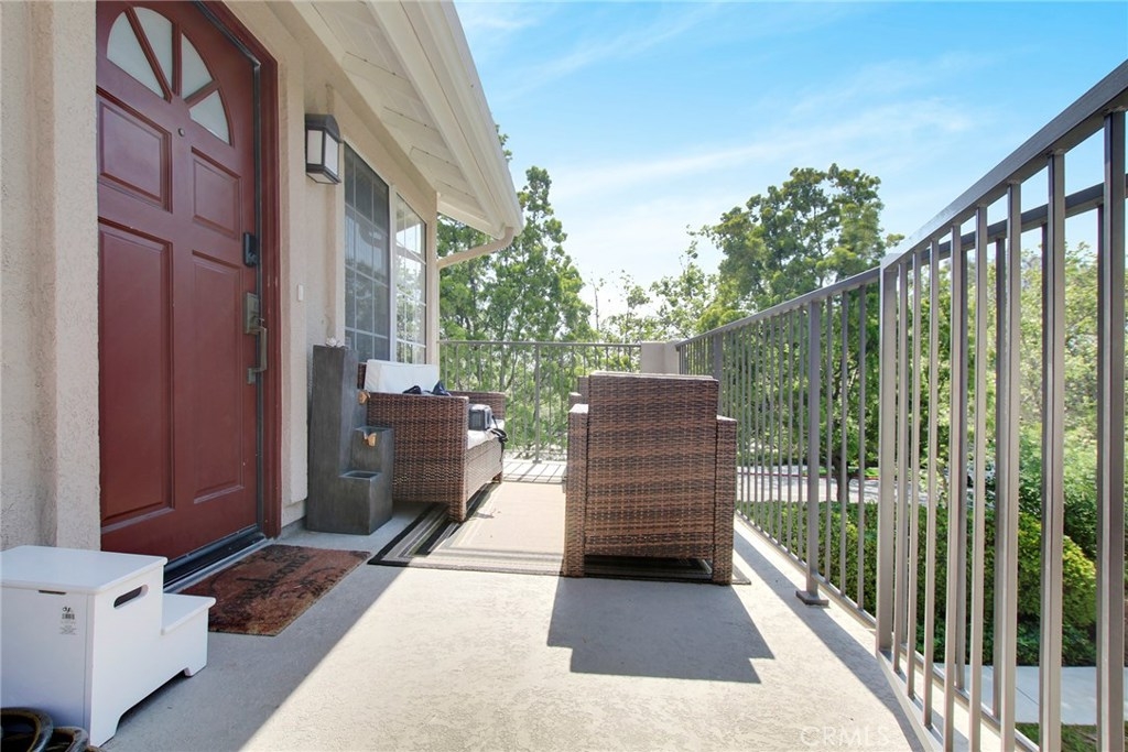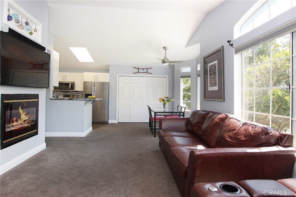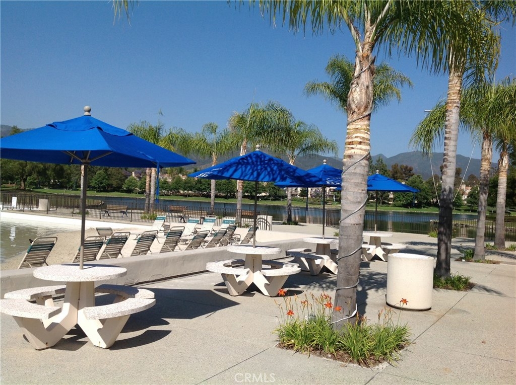 Charming 2 Bedroom, 2 Bath upstairs corner condo, (giving added privacy) also featuring a roomy front balcony with space for dining or relaxing and where you can enjoy a cool breeze and views of trees. The Interior of the home has new carpet/paint and natural lighting with many windows and vaulted ceilings enhancing the feeling of a much larger home; The spacious living & dining room is great for entertaining; the dining nook has a bay window & serene views of trees. The kitchen is galley style with new appliances including matching refrigerator and dishwasher, the kitchen is open to the dining & living area and has new granite counter top and new cabinets. The master bedroom is large with vaulted ceiling with private full bath and double sinks. 2nd bedroom is setup for your baby or child or den/office. All rooms have new day/night window coverings. Flat screen TV with sound and night bar over the fireplace remain. Conveniently located within walking distance to shopping, restaurants, schools, trails and the lake. Fantastic community pool and spa, plus a tot lot! adjacent to a park, picnic tables; barbecues; basketball courts; tennis courts; Homeowners enjoy a membership to the Santa Margarita Lake Beach Club, featuring swim beach; paddle boats; fishing and just a short walk to local shops and restaurants. Award winning elementary and middle schools. Close to transportation (241) and public transportation close by.