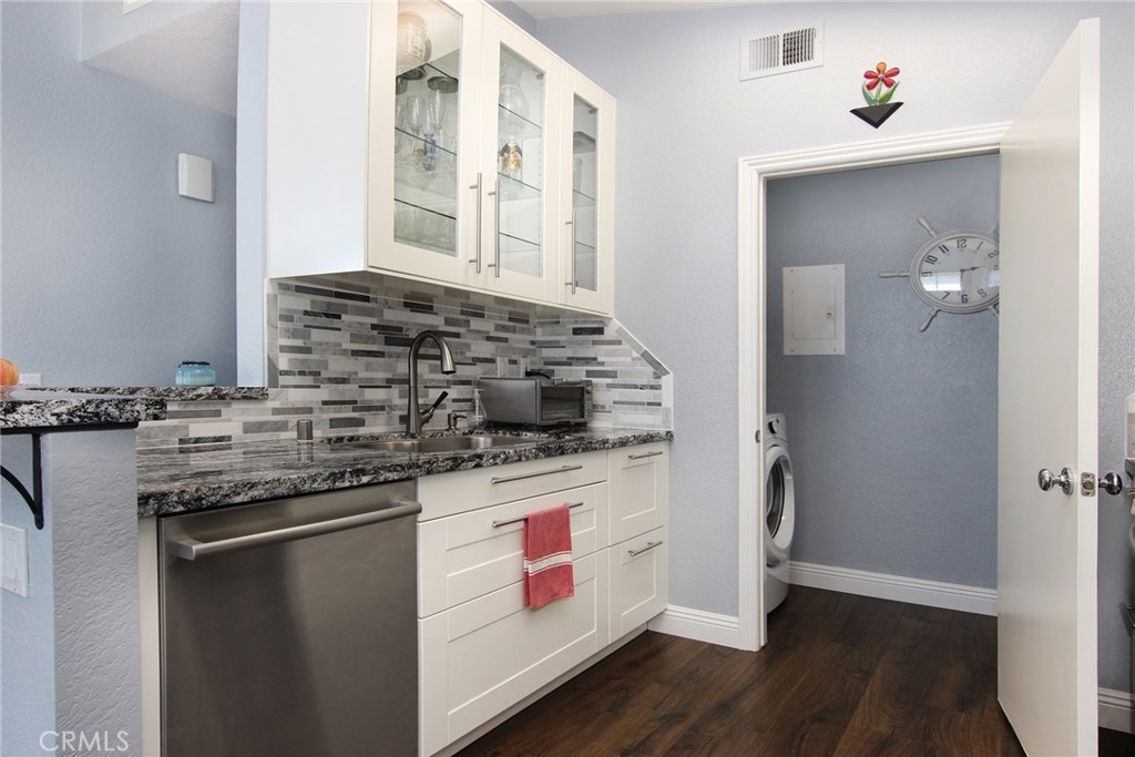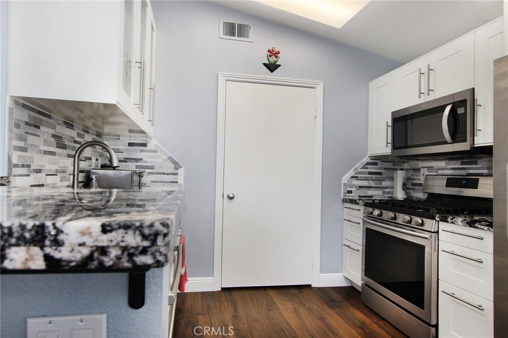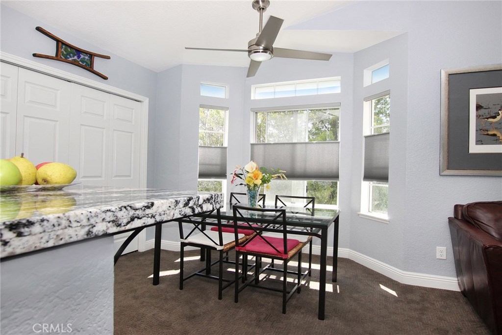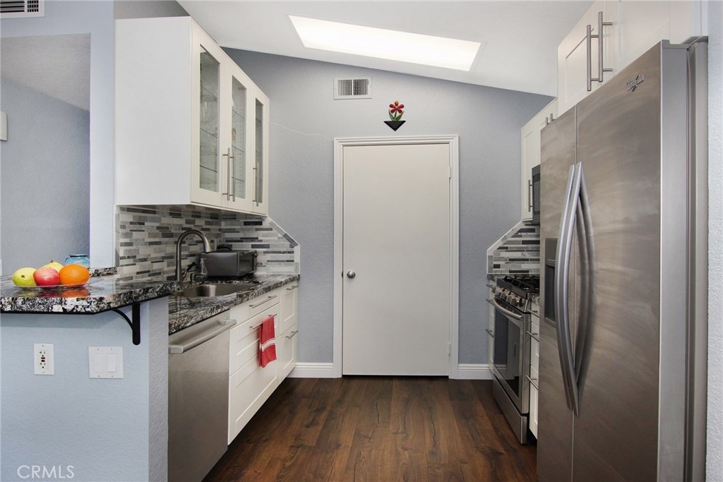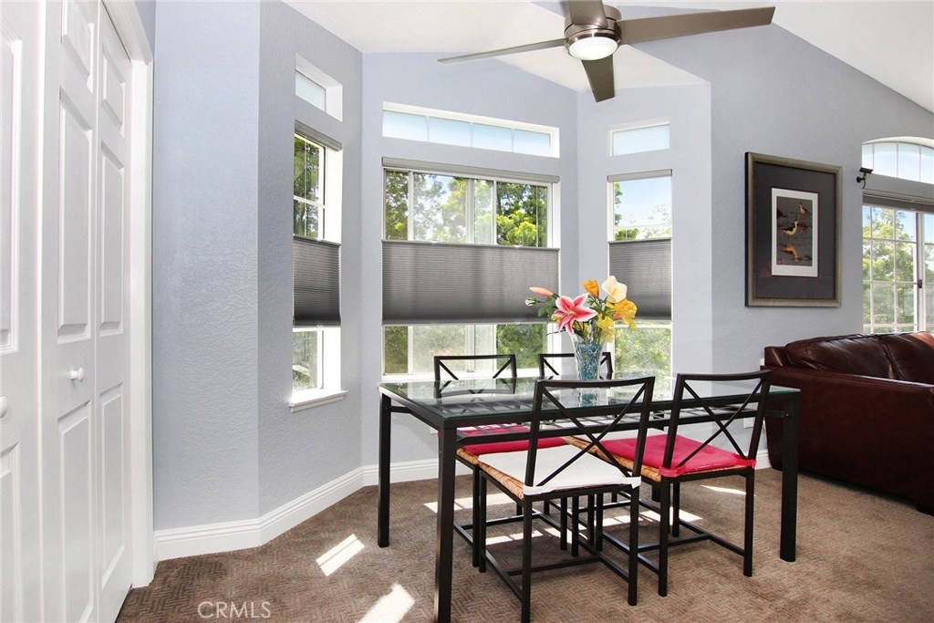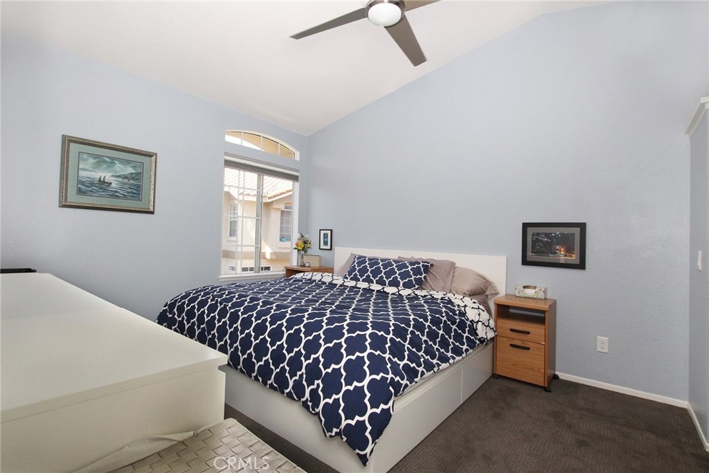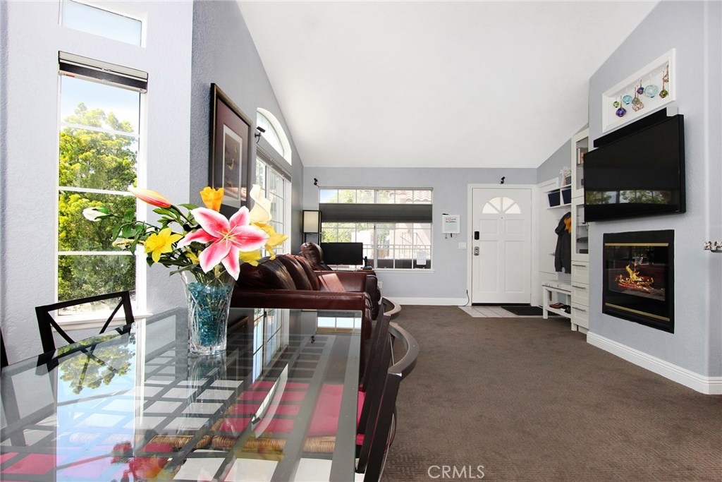 Charming 2 Bedroom, 2 Bath upstairs corner condo, (giving added privacy) also featuring a roomy front balcony with space for dining or relaxing and where you can enjoy a cool breeze and views of trees. The Interior of the home has new carpet/paint and natural lighting with many windows and vaulted ceilings enhancing the feeling of a much larger home; The spacious living & dining room is great for entertaining; the dining nook has a bay window & serene views of trees. The kitchen is galley style with new appliances including matching refrigerator and dishwasher, the kitchen is open to the dining & living area and has new granite counter top and new cabinets. The master bedroom is large with vaulted ceiling with private full bath and double sinks. 2nd bedroom is setup for your baby or child or den/office. All rooms have new day/night window coverings. Flat screen TV with sound and night bar over the fireplace remain. Conveniently located within walking distance to shopping, restaurants, schools, trails and the lake. Fantastic community pool and spa, plus a tot lot! adjacent to a park, picnic tables; barbecues; basketball courts; tennis courts; Homeowners enjoy a membership to the Santa Margarita Lake Beach Club, featuring swim beach; paddle boats; fishing and just a short walk to local shops and restaurants. Award winning elementary and middle schools. Close to transportation (241) and public transportation close by.