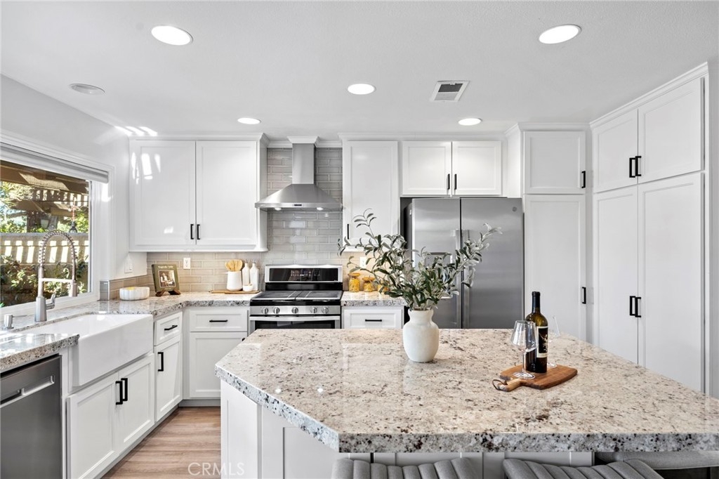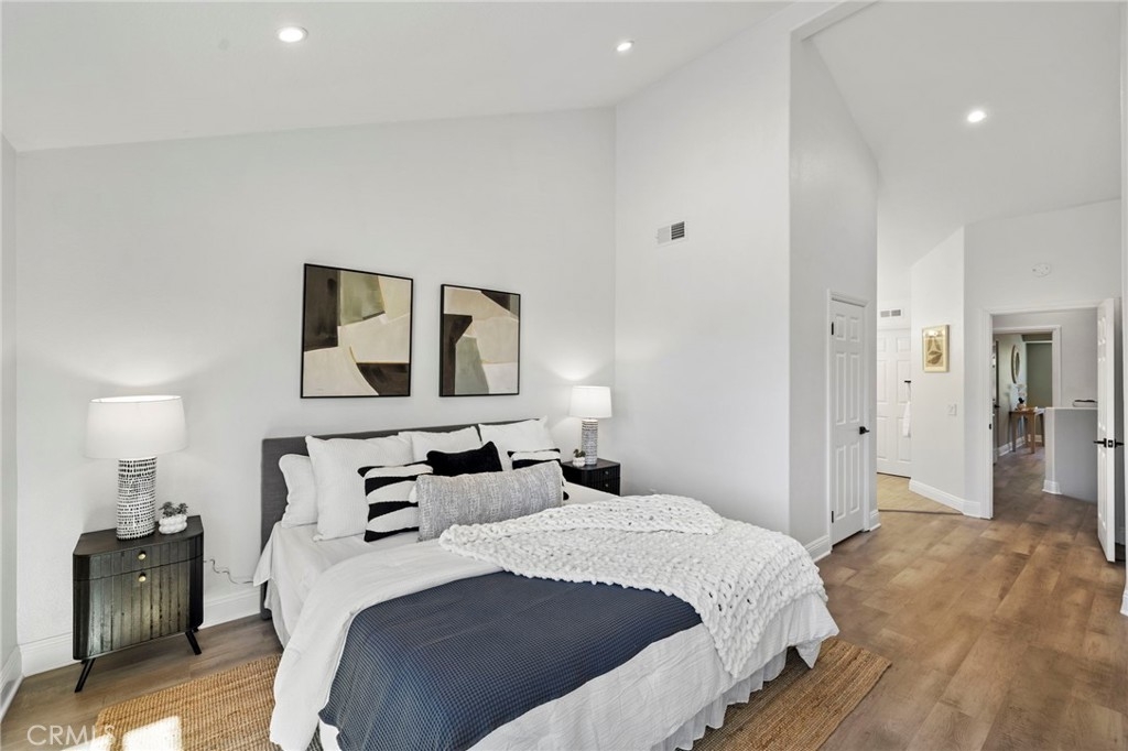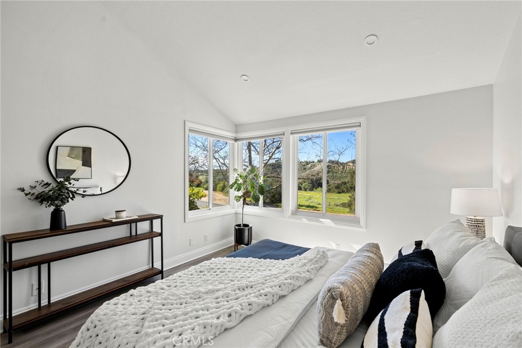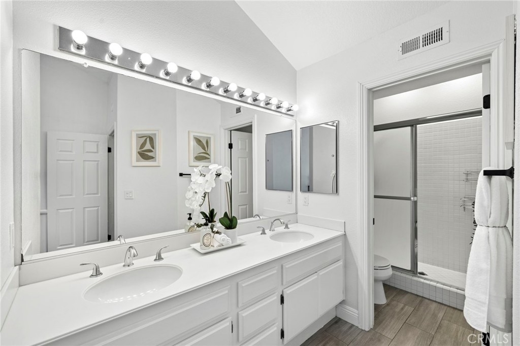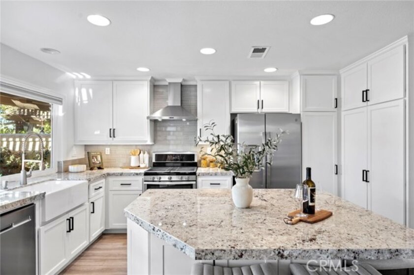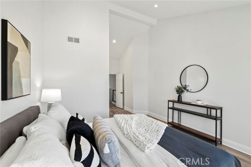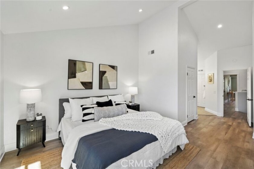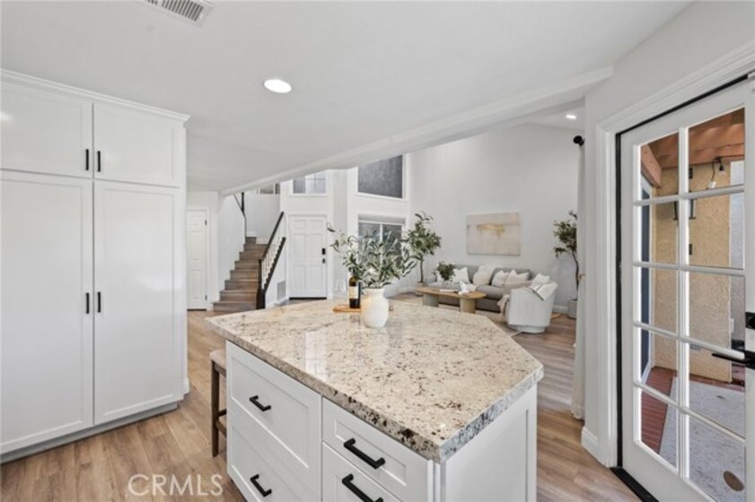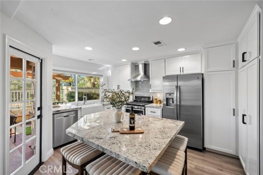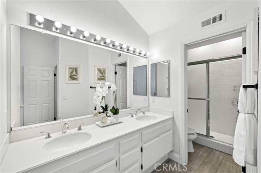 Ideally located just steps from Tijeras Creek Golf Club, this beautifully upgraded Tierra Linda townhome is an exceptional opportunity to enjoy comfortable, low-maintenance living in a highly desirable Rancho Santa Margarita community. The moment you step inside, you’re greeted with soaring vaulted ceilings, large windows and sliders allowing natural light to pour right in. The spacious living room features a cozy gas fireplace and opens effortlessly to the dining area and kitchen, providing a functional and inviting layout. The kitchen is highlighted by stainless steel appliances, white shaker cabinetry, farm sink, subway tile, granite countertops, and a generous island that provides additional storage, bar seating for four and prep space. This unit features a rare and fully open-concept great room - a huge upgrade from the original model. The living space, kitchen, and dining share one room with no interfering beams or walls creating one impressive living area with 2-story ceilings. A convenient powder room on the main level services the great room with direct garage access. The private outdoor area has been thoughtfully updated with fresh landscaping, a newly-constructed pergola, and a new patio door while providing picturesque views of the surrounding hills. Upstairs, you’ll find two generously-sized primary bedrooms that have been updated with luxury vinyl plank flooring. The rear suite offers vaulted ceilings and major views out to open, undeveloped land with a major trail system. The front bedroom is also very spacious with vaulted ceilings and mirrored closet doors. Each bedroom offers a private en-suite bathroom and ample closet space (the rear features a large walk-in). Both bathrooms are well-appointed with ample counter space and storage. The rear has a walk-in shower and the front offers a shower and tub. Other upgrades include a new HVAC system, fully re-piped, luxury vinyl plank flooring on the stairs and entire second level, and select windows have been replaced. Enjoy a community in top condition, with the exterior being recently painted and the HOA currently in the process of completing a re-roofing project across the neighborhood. All residents also have access to premium amenities including a pool, spa, BBQ area, sport courts, and full SAMLARC privileges. Ideally located near award-winning schools, scenic parks, dining, shopping, and major commuting routes, this turnkey property is move-in ready!