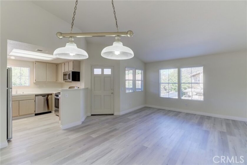 Los Portillos – Private Upper End Unit This charming 1-bedroom, 1-bathroom upper end unit offers exceptional privacy with no one above or below and an attached one-car garage directly beneath the unit. Enjoy a large front balcony, perfect for relaxing or entertaining. The interior features luxury vinyl plank flooring throughout, a spacious living room with vaulted ceilings, and an open, airy feel. The primary suite includes a walk-in closet, and an inside stackable washer and dryer adds everyday convenience. The kitchen is equipped with newer appliances. A new water heater was installed in 2025. Located in a quiet interior tract location, the home also offers excellent street parking for guests and is within walking distance to shops, restaurants, and more. Outdoor enthusiasts will love the wonderful hiking and biking trails at the end of the community. Residents enjoy resort-style community amenities, including a pool and spa. The community has been repiped. A wonderful opportunity for comfortable, modern living in a convenient, active, and vibrant community.