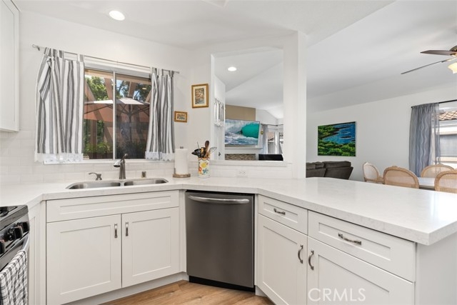 BEAUTIFULLY REMODELED 2BR HOME, DETACHED WITH NO COMMON WALLS, LOCATED ON LAGO SANTA MARGARITA - Nested in the tranquil community of Brisa Del Lago you find this completely remodeled home, Located right on the Lago Santa Margarita Lake with events such as Music, Movies and campouts. This contemporary remodeled home boasts a modern kitchen with quartz countertops and a breakfast counter seating. New stainless-steel appliances, plenty cabinetry and storage. The kitchen opens up towards the open floorplan dining area and cozy family room, perfectly suited for gatherings & entertainment. As you move to the other side of the home, you will find the main bedroom suite with the connected ensuite bathroom with dual vanity, a tub/shower as well as a spacious walk-in closet. The additional, well-sized secondary bedroom offers retreat for guests. The home has vinyl flooring throughout and convenient, in unit laundry. Neighborhood amenities include a Pool, Picnic Area, Playground, Biking Trails, Banquet Facilities, Recreation Room, Meeting Room, Trash, walking trails and community events. Local nature trails popular for hiking and mountain biking are also within short distance.