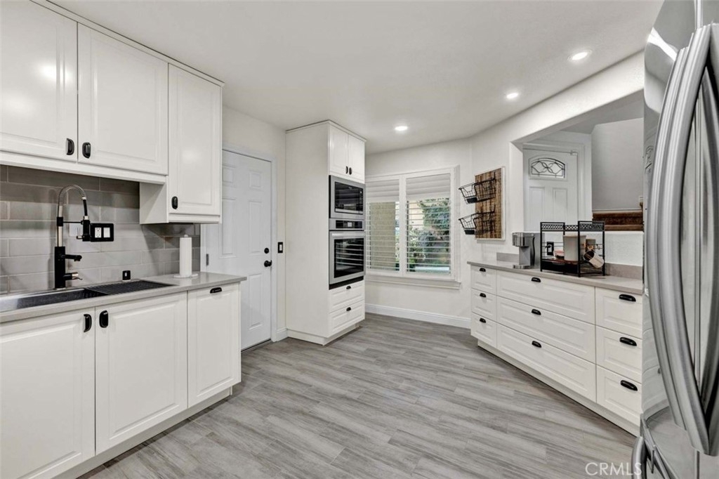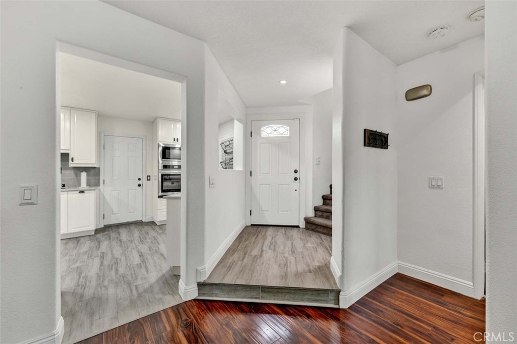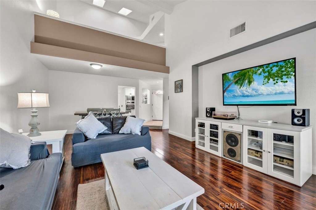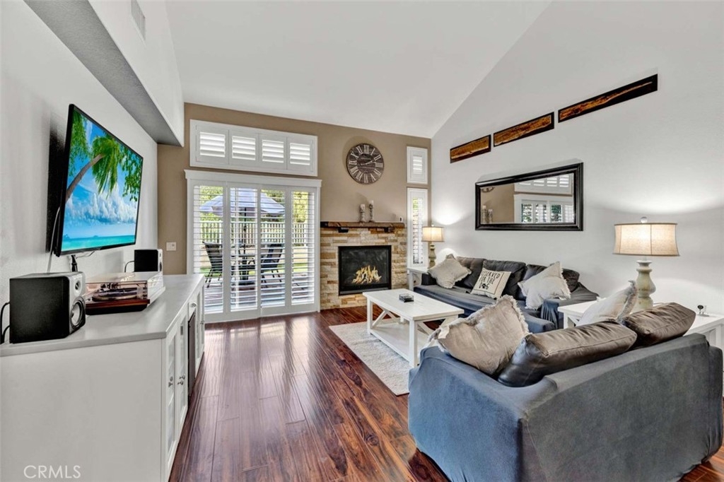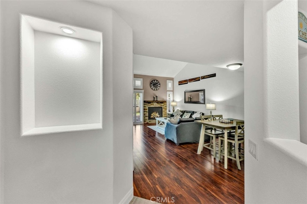 Welcome to your dream home, nestled in the highly sought-after Tierra Linda Community, offering breathtaking Wilderness Canyon Views. Step through the entrance and be greeted by sleek grey porcelain tile flooring in the foyer, leading to the living room where dark wood laminate flooring meets custom greige paint and an accent wall. Plantation shutters frame, and Renewal by Anderson windows throughout home. Living room has a charming stacked stone fireplace as the focal point. The remodeled kitchen is a chef’s delight, featuring grey Porcelain tile flooring, elegant white cabinets with black pulls, grey quartz countertops, and ample cabinet storage. Downstairs, discover a cozy bedroom with walnut-toned laminate flooring, vibrant teal paint, and a closet. A convenient downstairs bath with walnut cabinets, granite counters and includes a shower. Ascend the stairs to find a grand loft and two master suites, each adorned with laminate flooring one with and custom closet doors with walk in closet. 1st master bath boasts white cabinets, black accents, and drawer pulls, with a walk-in shower featuring stylish tiles and black fixtures. The second master suite offers custom teal paint and laminate flooring, with an ensuite bath showcasing walnut-toned cabinets, granite counters, and a bathtub. Step outside to the expansive patio, perfect for entertaining, with concrete and brick ribbon accents and artificial turf, it's an ideal spot to enjoy a glass of wine, host BBQs, and marvel at the panoramic views of the hills and canyons during stunning sunsets. The property includes a two-car garage and a two-car driveway, with additional community parking available. New AC/HVAC only 4 years old.Tankless Water Heater, app controlled access garage door opening receiver. Boasting low taxes of 1.02% and no Mello Roos, the community was fully re-piped in 2018, and new roofs are coming. Families will appreciate the distinguished schools, while outdoor enthusiasts can take advantage of nearby golf courses, hiking, and biking trails. The area also offers a range of amenities, including pools, parks, tennis courts, pickleball, basketball courts, a lake walk, beach club, shopping, and dining options. Rancho has it all, and has proudly been named the safest city in California in 2024.This exceptional townhome is truly a gem—don't miss the chance to call it yours!