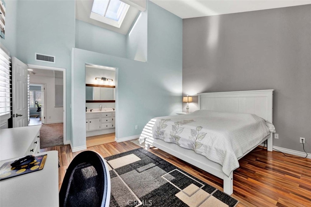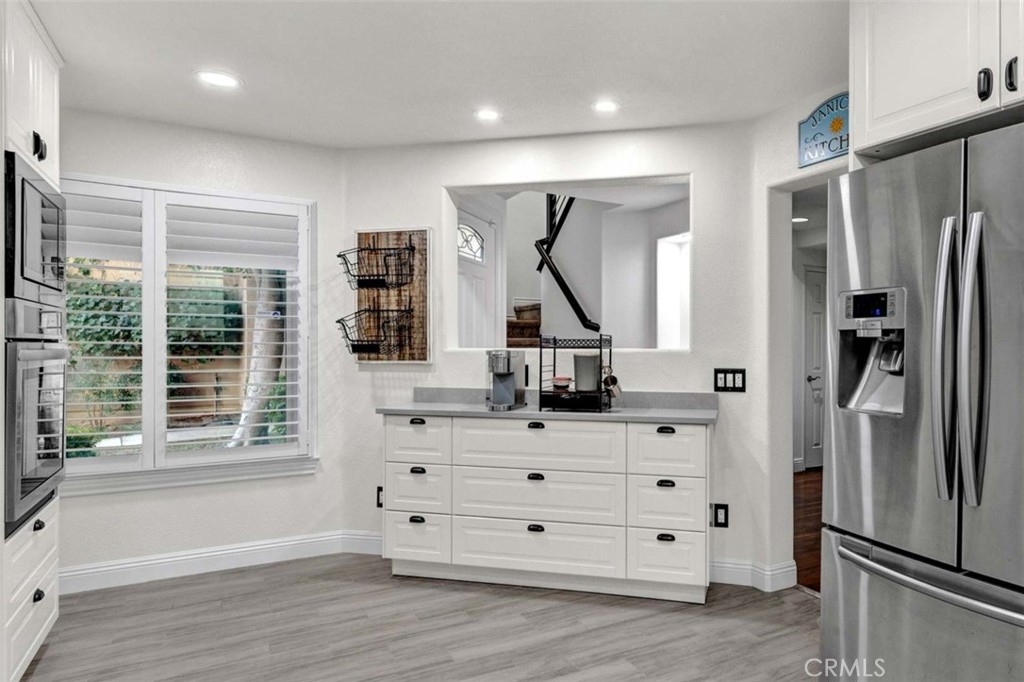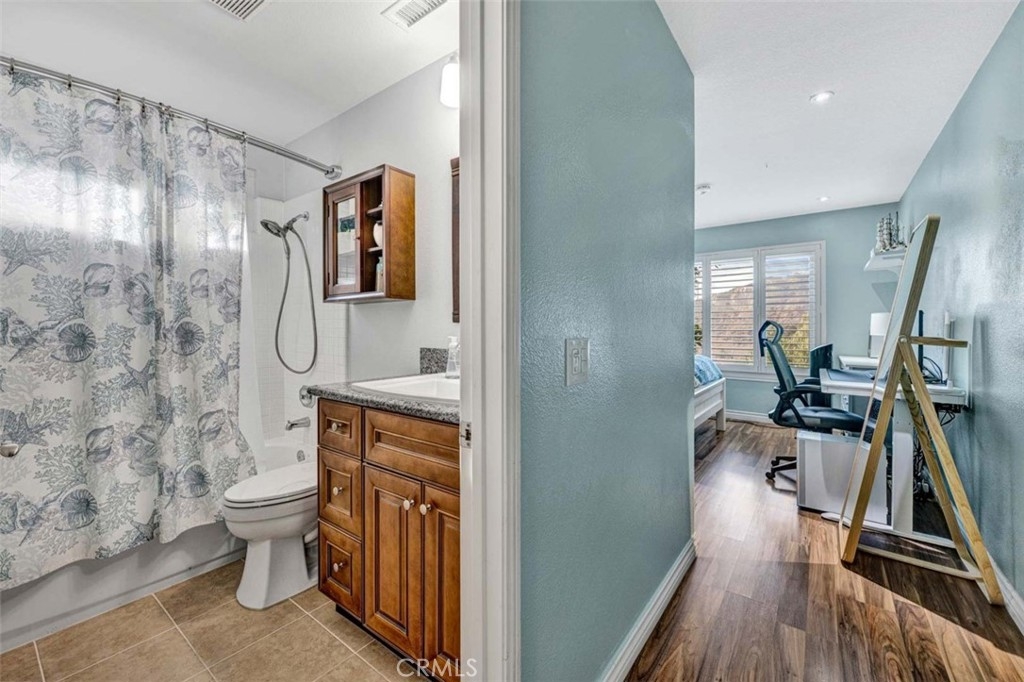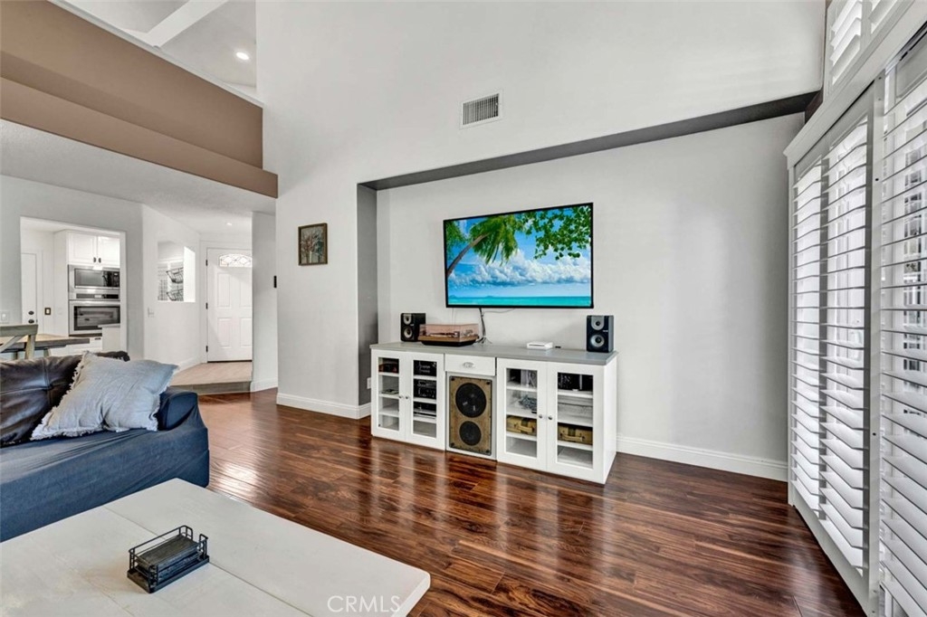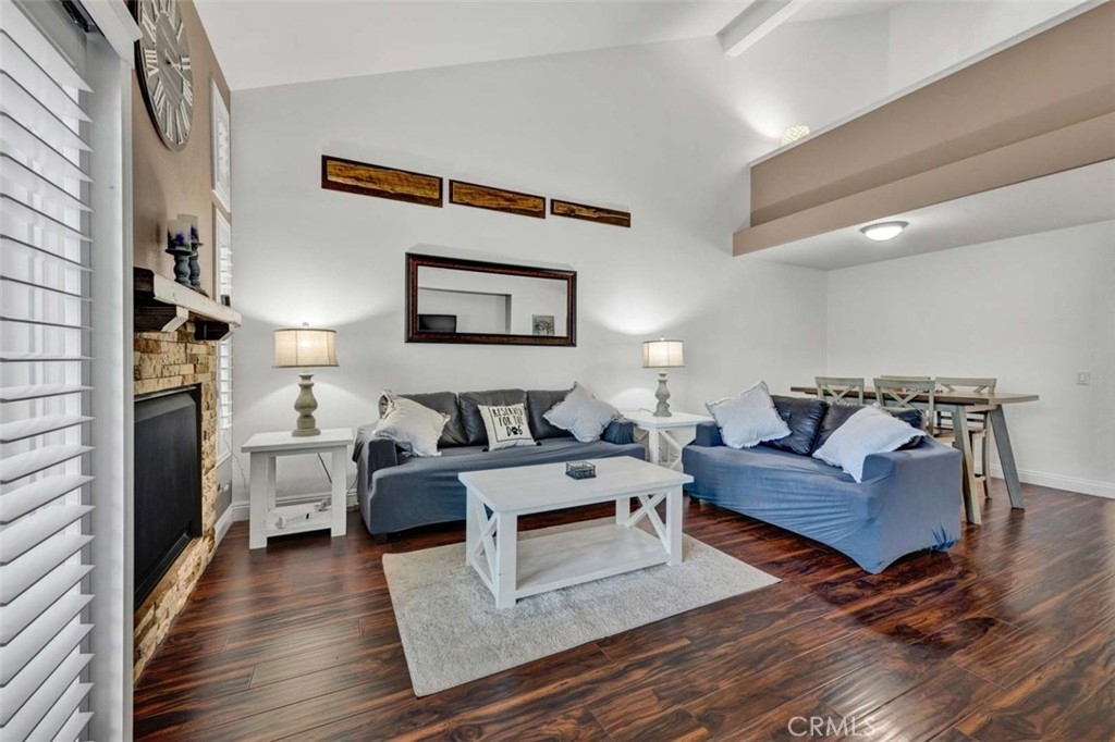 Welcome to your dream home, nestled in the highly sought-after Tierra Linda Community, offering breathtaking Wilderness Canyon Views. Step through the entrance and be greeted by sleek grey porcelain tile flooring in the foyer, leading to the living room where dark wood laminate flooring meets custom greige paint and an accent wall. Plantation shutters frame, and Renewal by Anderson windows throughout home. Living room has a charming stacked stone fireplace as the focal point. The remodeled kitchen is a chef’s delight, featuring grey Porcelain tile flooring, elegant white cabinets with black pulls, grey quartz countertops, and ample cabinet storage. Downstairs, discover a cozy bedroom with walnut-toned laminate flooring, vibrant teal paint, and a closet. A convenient downstairs bath with walnut cabinets, granite counters and includes a shower. Ascend the stairs to find a grand loft and two master suites, each adorned with laminate flooring one with and custom closet doors with walk in closet. 1st master bath boasts white cabinets, black accents, and drawer pulls, with a walk-in shower featuring stylish tiles and black fixtures. The second master suite offers custom teal paint and laminate flooring, with an ensuite bath showcasing walnut-toned cabinets, granite counters, and a bathtub. Step outside to the expansive patio, perfect for entertaining, with concrete and brick ribbon accents and artificial turf, it's an ideal spot to enjoy a glass of wine, host BBQs, and marvel at the panoramic views of the hills and canyons during stunning sunsets. The property includes a two-car garage and a two-car driveway, with additional community parking available. New AC/HVAC only 4 years old.Tankless Water Heater, app controlled access garage door opening receiver. Boasting low taxes of 1.02% and no Mello Roos, the community was fully re-piped in 2018, and new roofs are coming. Families will appreciate the distinguished schools, while outdoor enthusiasts can take advantage of nearby golf courses, hiking, and biking trails. The area also offers a range of amenities, including pools, parks, tennis courts, pickleball, basketball courts, a lake walk, beach club, shopping, and dining options. Rancho has it all, and has proudly been named the safest city in California in 2024.This exceptional townhome is truly a gem—don't miss the chance to call it yours!