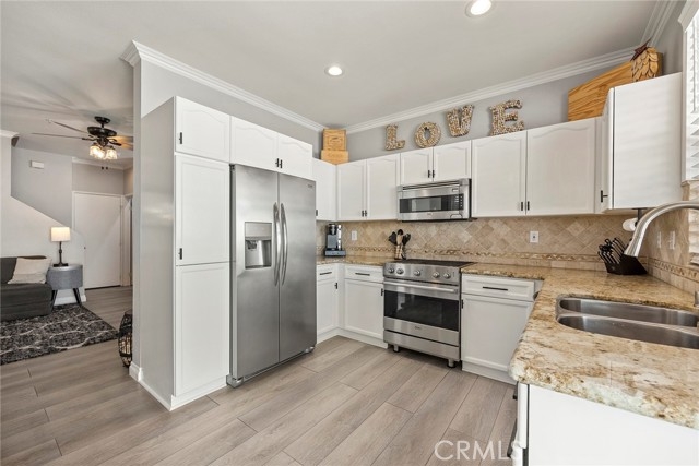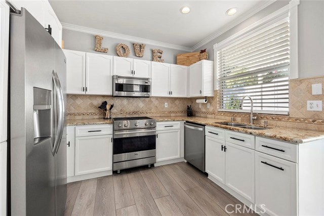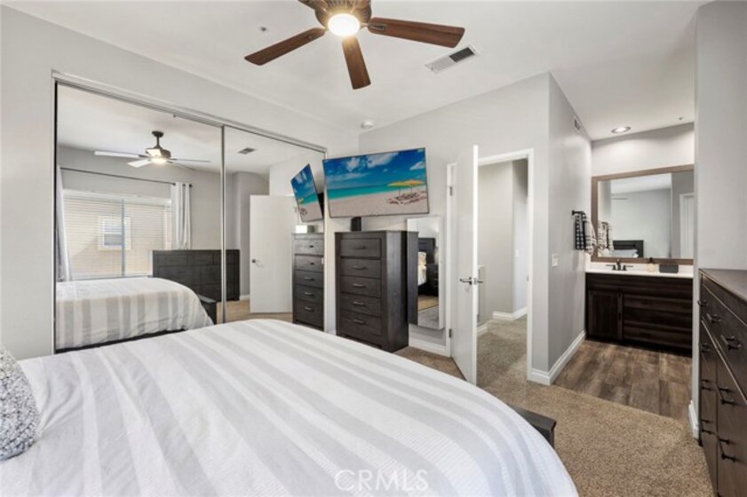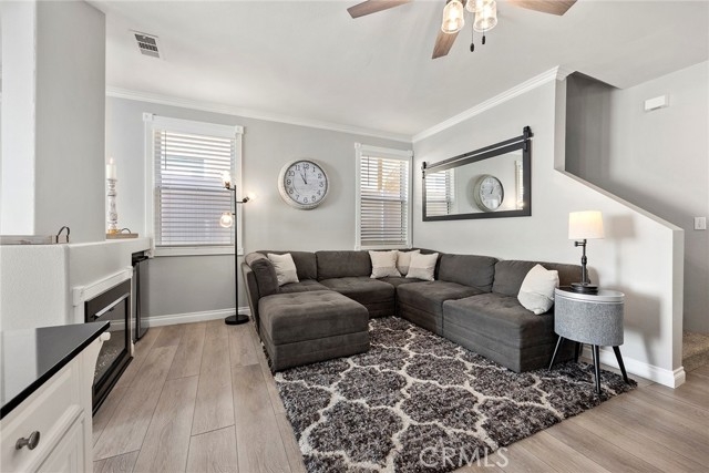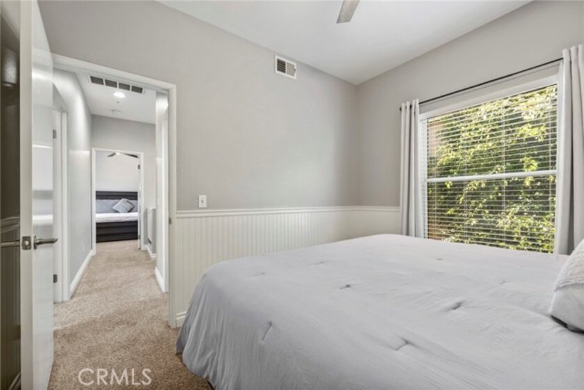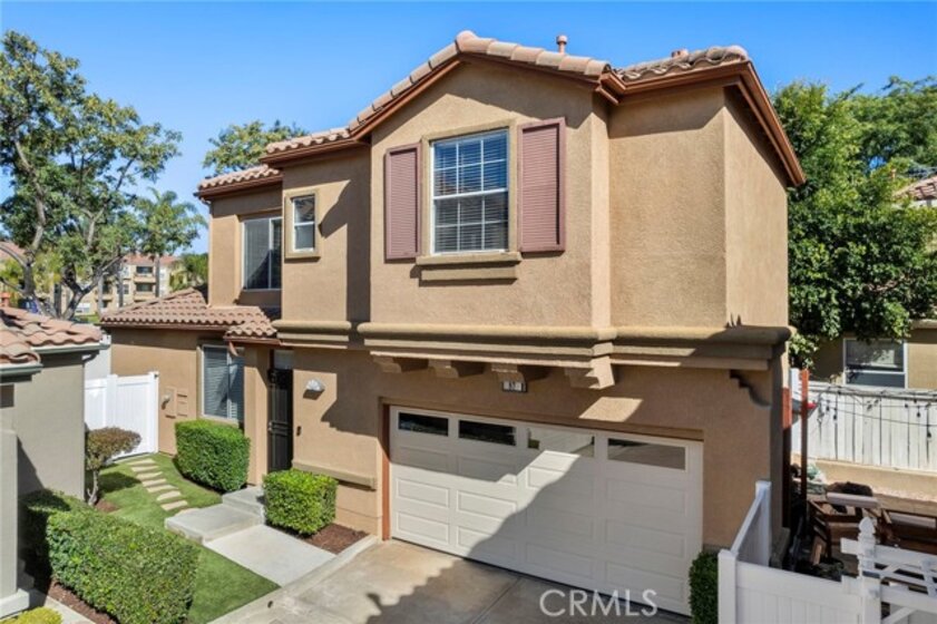 Welcome to 87 Calle De Felicidad in the community of Los Abanicos in Rancho Santa Margarita. This detached condominium feels and acts like a single-family residence. It has a 2-car garage with direct access and ample storage. One thing that makes this home truly special is that it is situated in a great cul-de-sac location with a LARGE backyard that is great for entertaining. It has a tile patio, artificial turf and NEW Vinyl fencing that creates great privacy. Once you are inside you will see it has been updated throughout. Vinyl flooring downstairs, carpet up with new vinyl floor in the bathrooms, crown molding, ceiling fans in every room, nine-foot ceilings, blinds on the windows. The bathroom vanities have all been replaced along with the mirrors and lighting. The family room is spacious with an electric fireplace. The kitchen has stainless steel appliances, granite counter tops and a large area for you kitchen table. All three bedrooms are up. The master bedroom has an ensuite bathroom with dual sinks, new vanity, and remodeled shower with dual shower heads. This property is located close to school, restaurants, shopping. All homes in Ranch Santa Margarita have access to SAMLARC which gives you access to the beach club, pools, parks, trails, fishing and more! You do not want to miss this one!