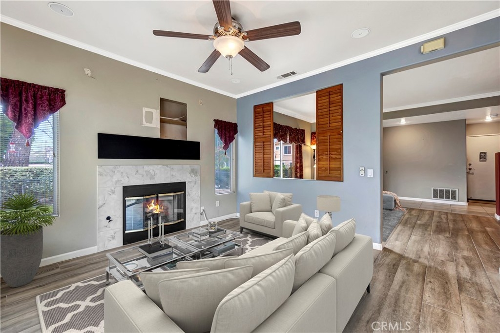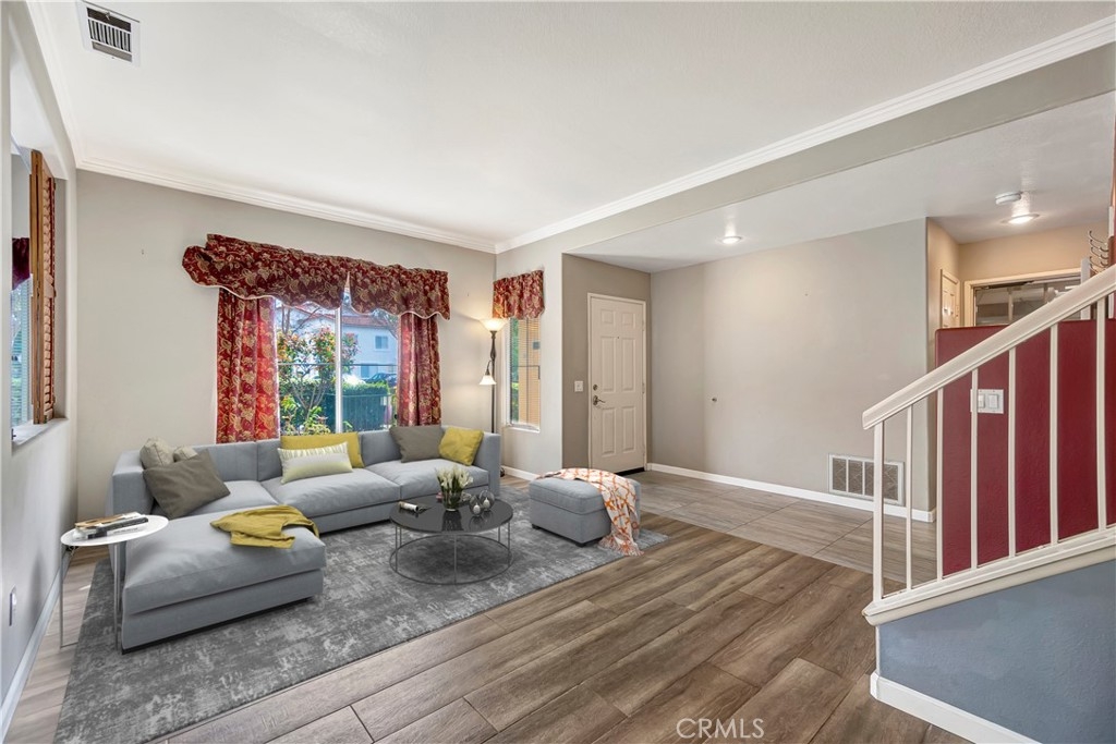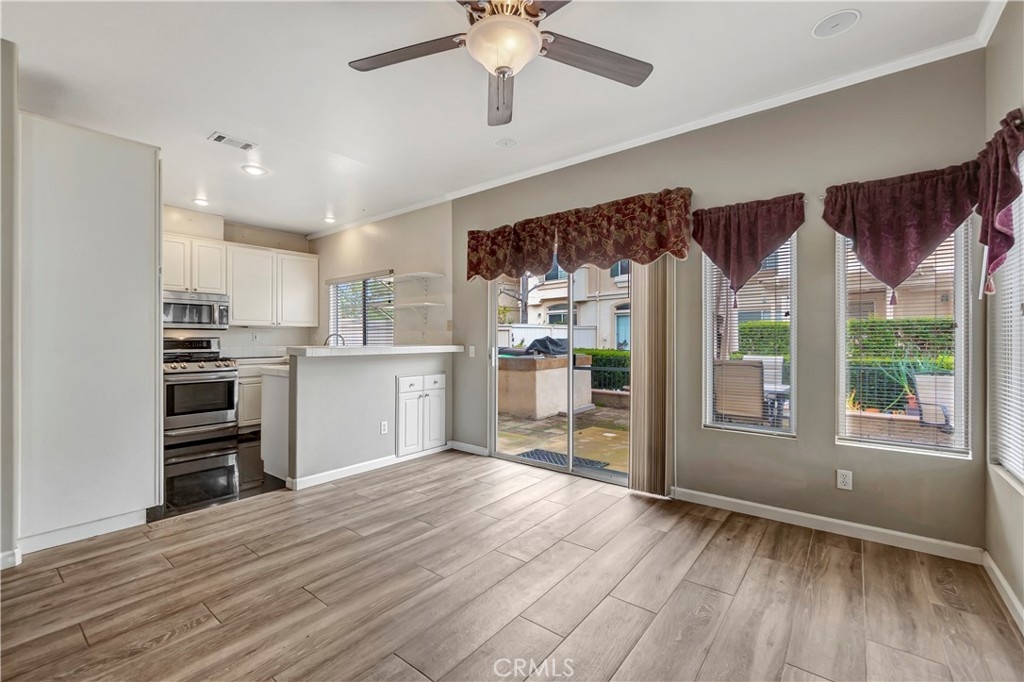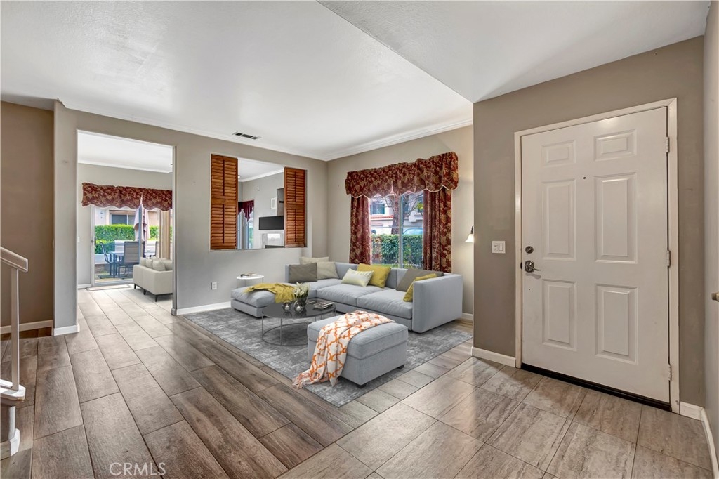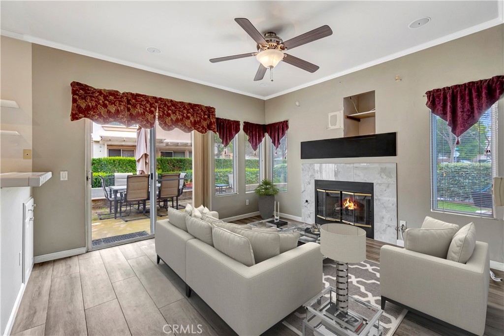 Welcome to this inviting two story condo situated in family friendly Rancho Santa Margarita. The kitchen is equipped with modern stainless steel appliances and connects seamlessly to a family room that features a cozy fireplace and sliding glass door that opens to the yard. The main level is completed by a spacious living room, formal dining room and convenient half bath. Upstairs awaits three generously sized bedrooms and two bathrooms, including the primary suite, which boasts a remodeled ensuite bathroom. Additional highlights include high ceilings, an attached two car garage with laundry and large fenced yard with a patio, grassy yard and built-in bbq. Enjoy being steps away from Mesa Linda Park, which has a basketball court, volleyball court, tennis court, playground and covered picnic shelter.